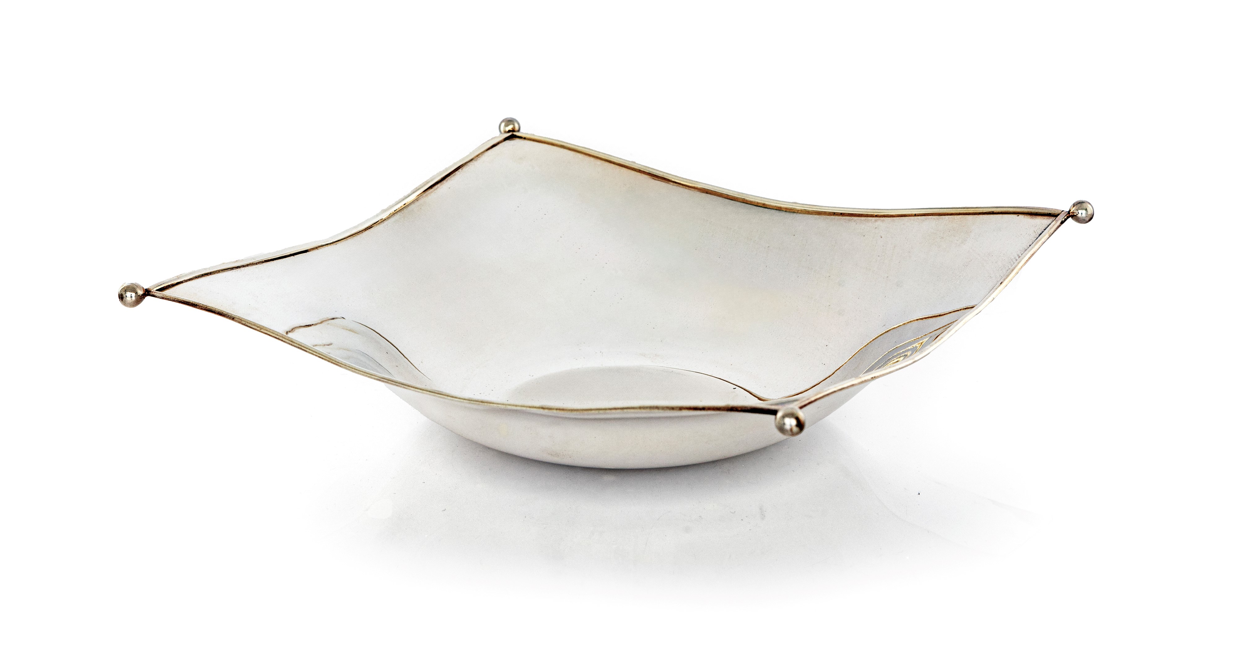 di forma quadrangolare sottolineato da cordolo e rifinito da piccole sfere angolari