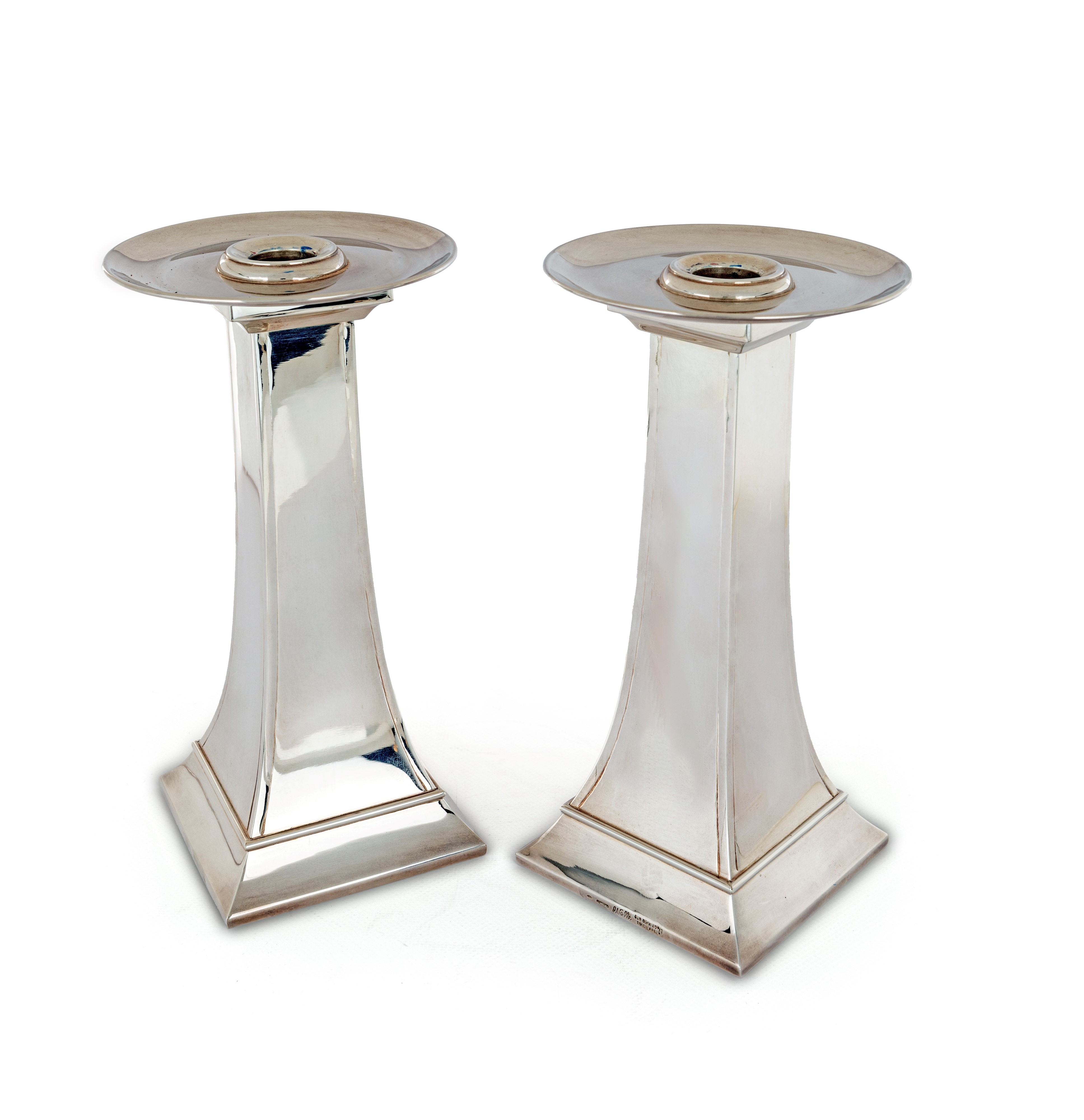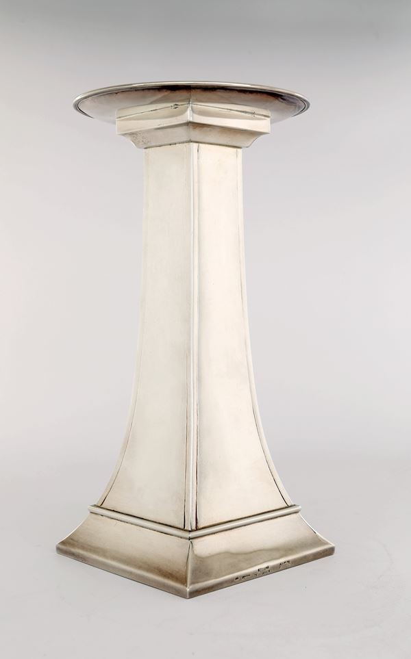 Coppia di candelieri squadrati, Argentiere Vallè, Milano, per Bottega dell'Argento