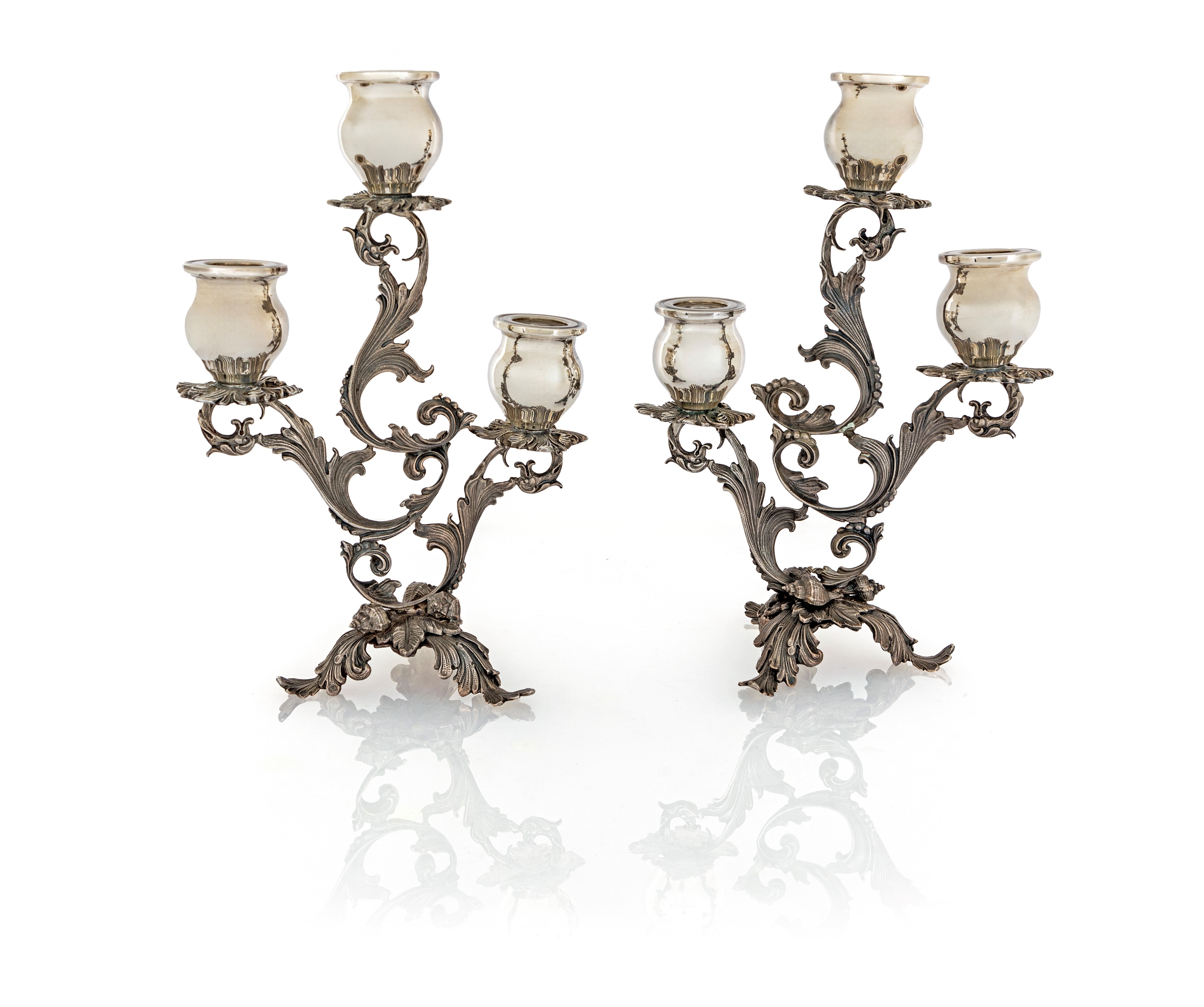 Coppia di piccoli candelieri a tre luci, Sandri Milano