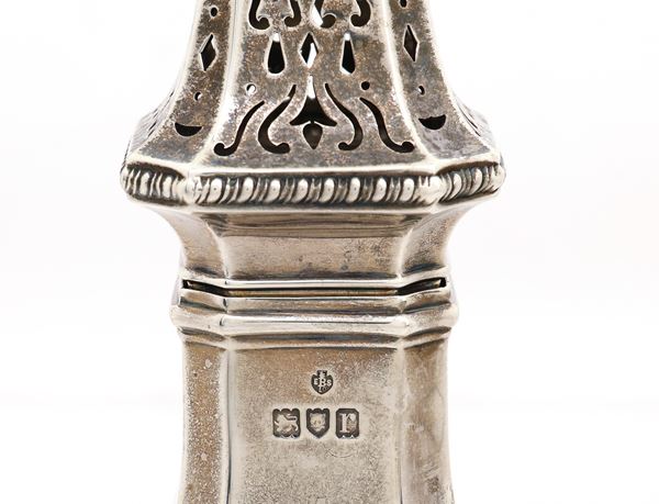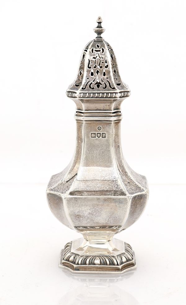 corpo a balaustro squadrato con spigoli scantonati su piede percorso da ovoli e brevi nervature; coperchio sormontato da pinnacolo
