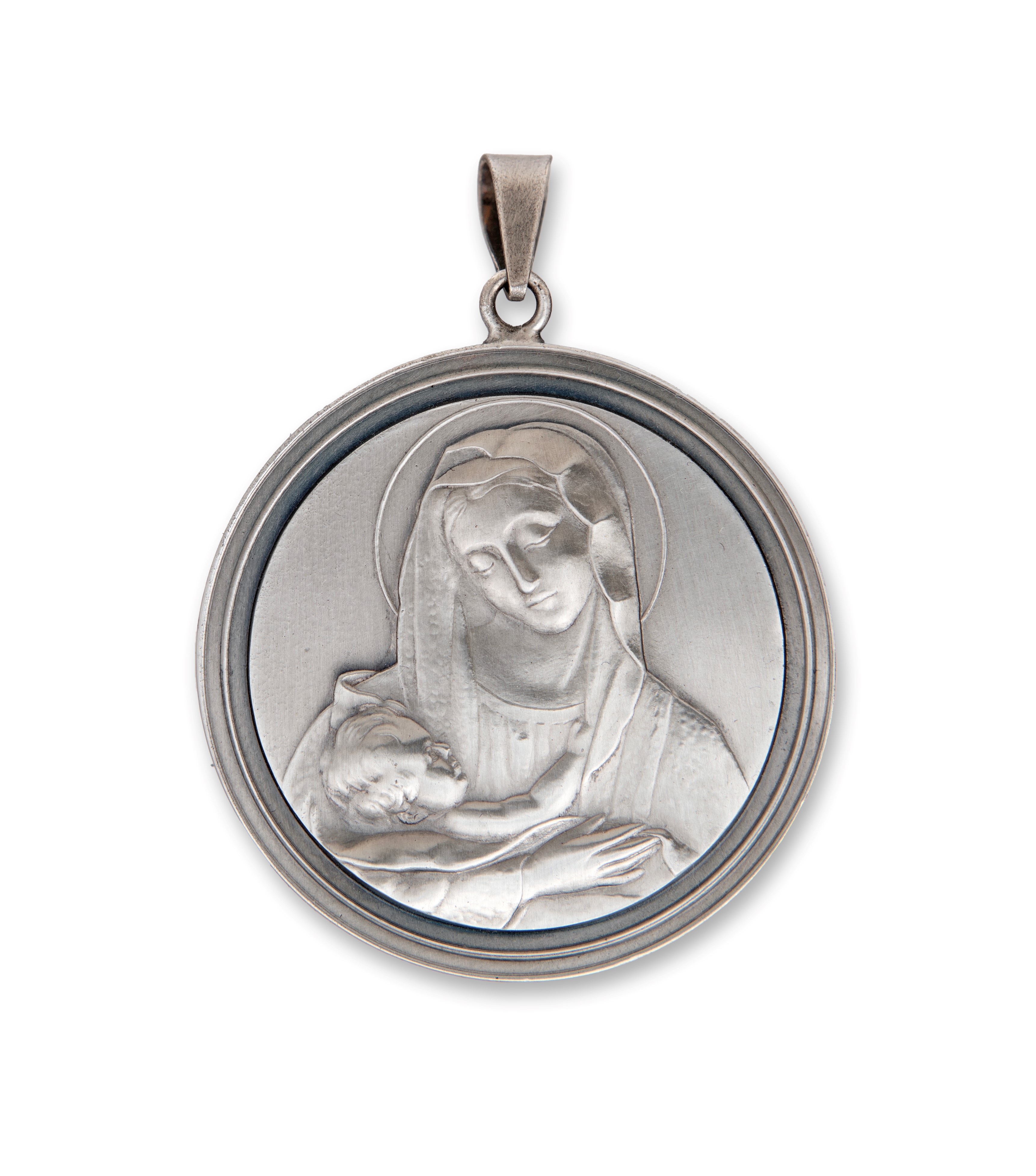 Medaglia raffigurante "Madonna col Bambino" eseguita da Rossella Maggi