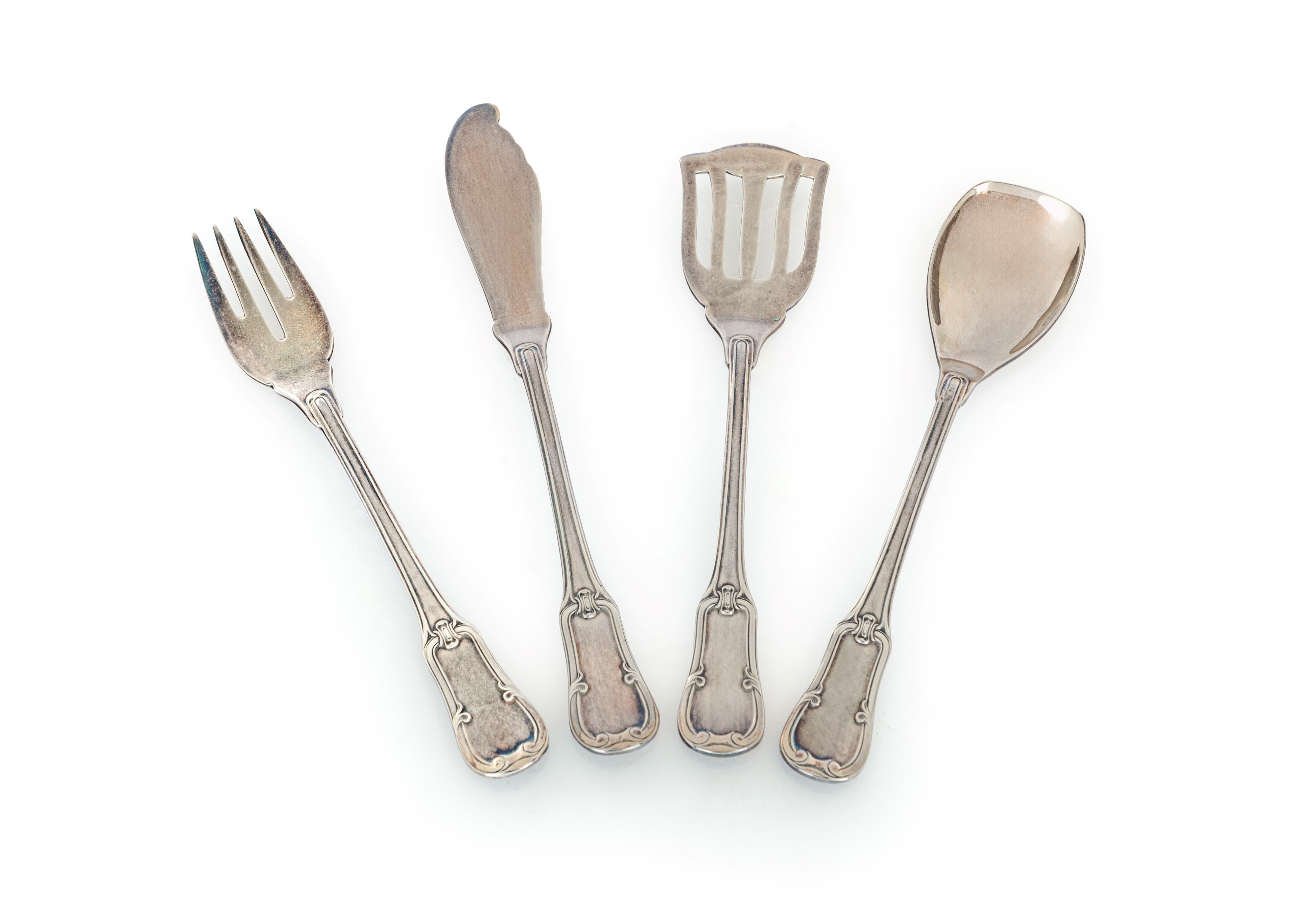 Quattro piccole posate da antipasto "barocco con conchiglia"