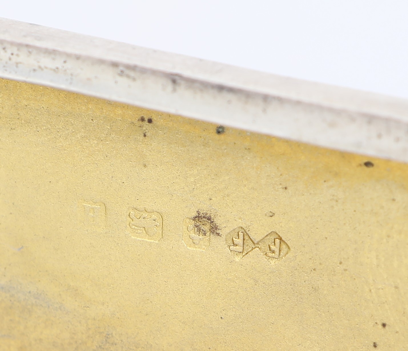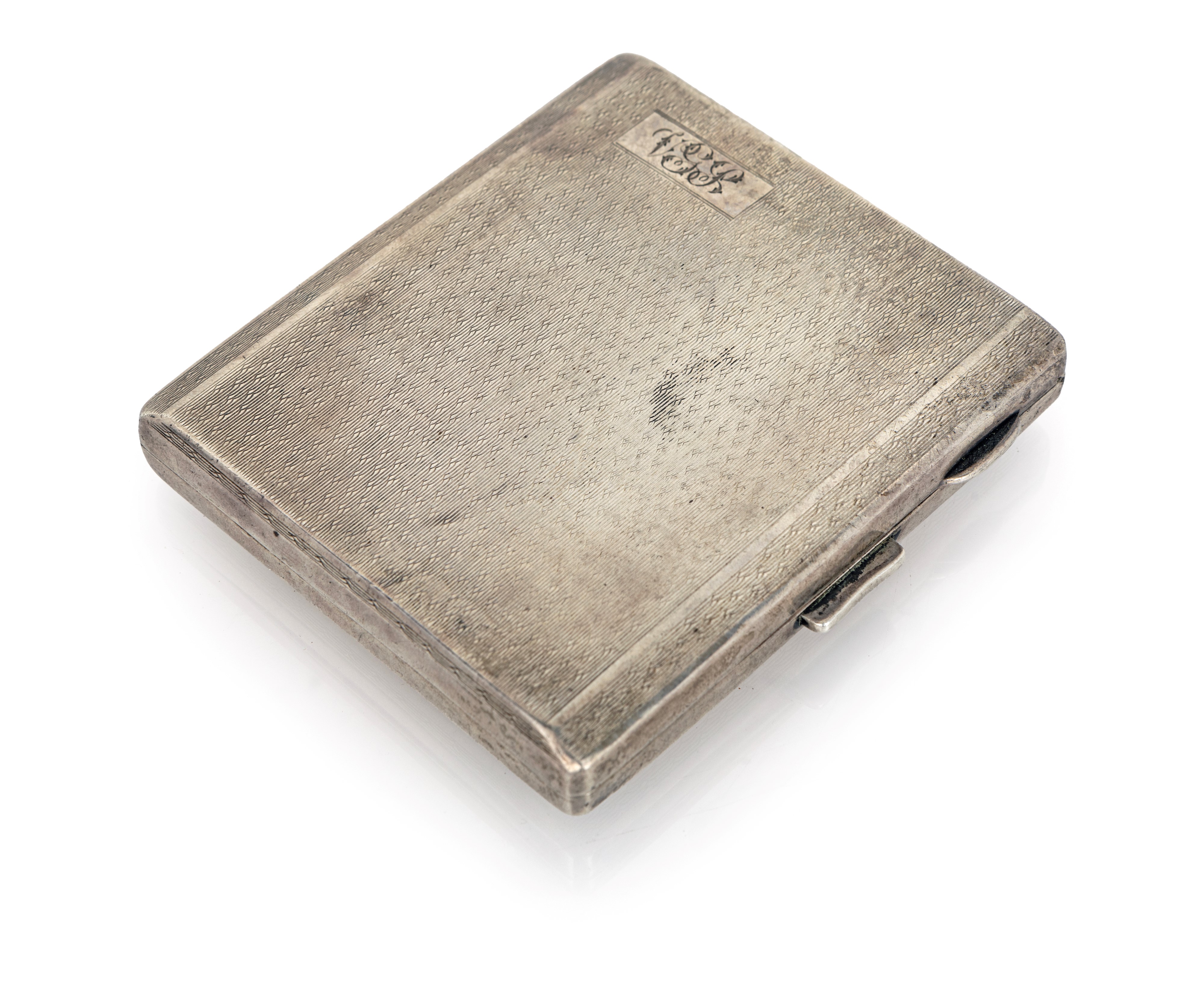 con apertura a scatto e superficie interamente incisa a bulino a minuscoli motivi su fondo rigato; monogramma inciso entro riserva angolare