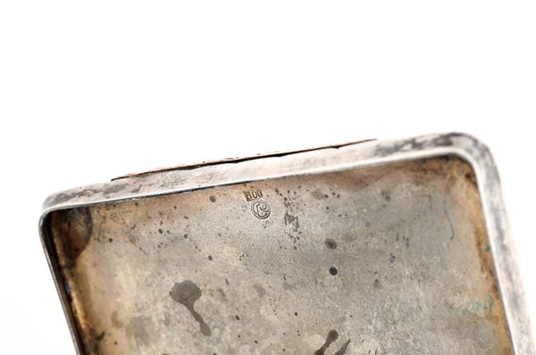 con monogramma PS inciso su piccolo disco in oro basso con sottile profilo in smalto bianco e blu, da cui si dipartono linee incise disposte a raggiera