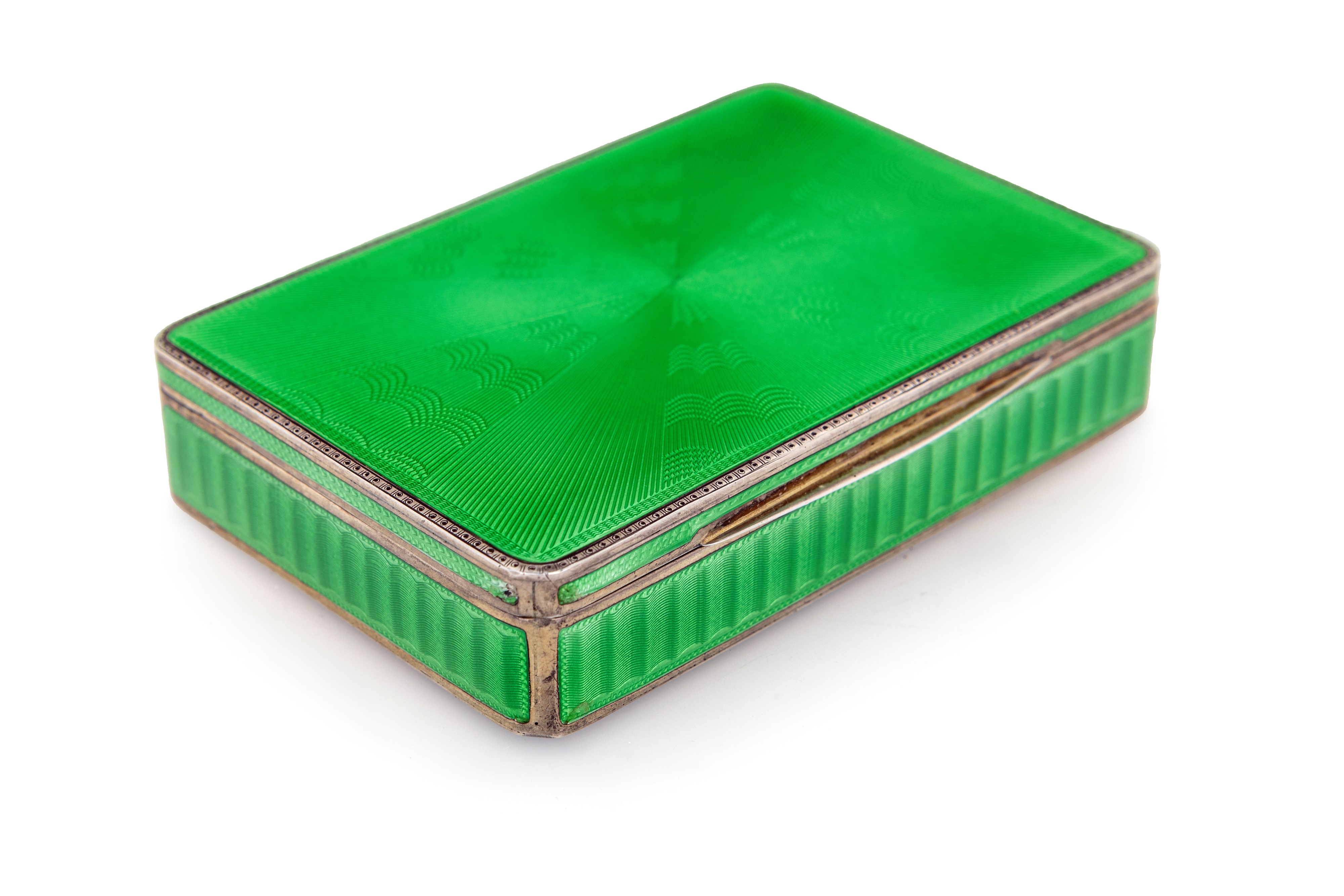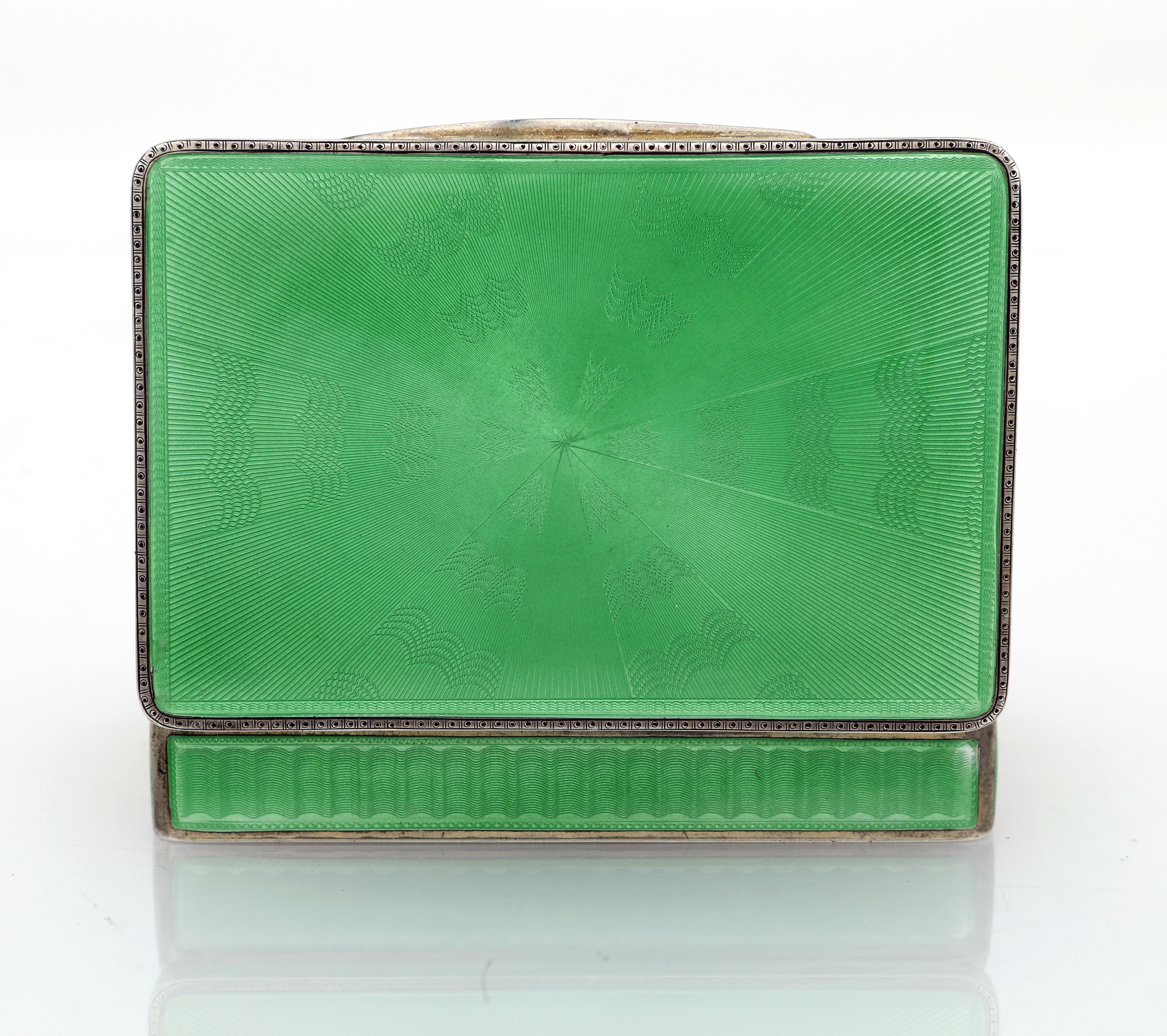 Scatola rettangolare in argento e smalto verde, Serra, Roma