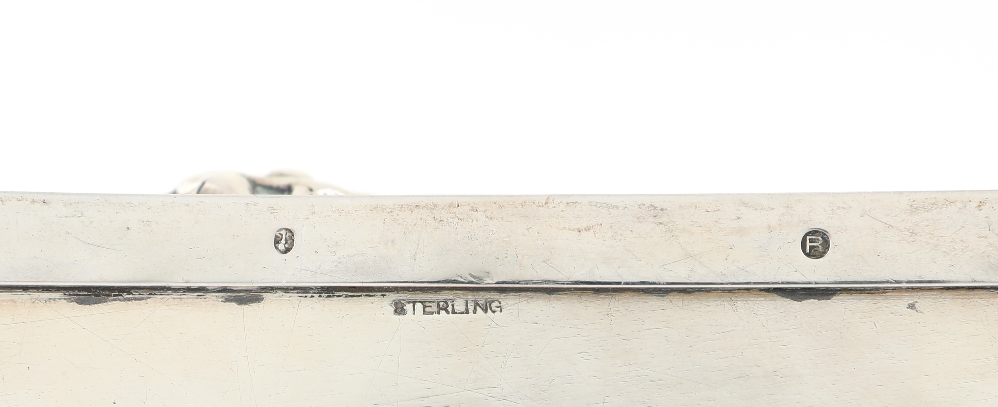 Scatola rettangolare in legno e argento sterling con figure in rilievo