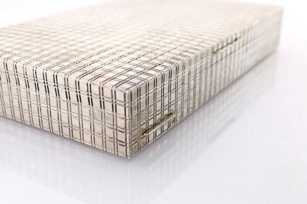 Scatola rettangolare in legno e lamina d'argento a motivi geometrici