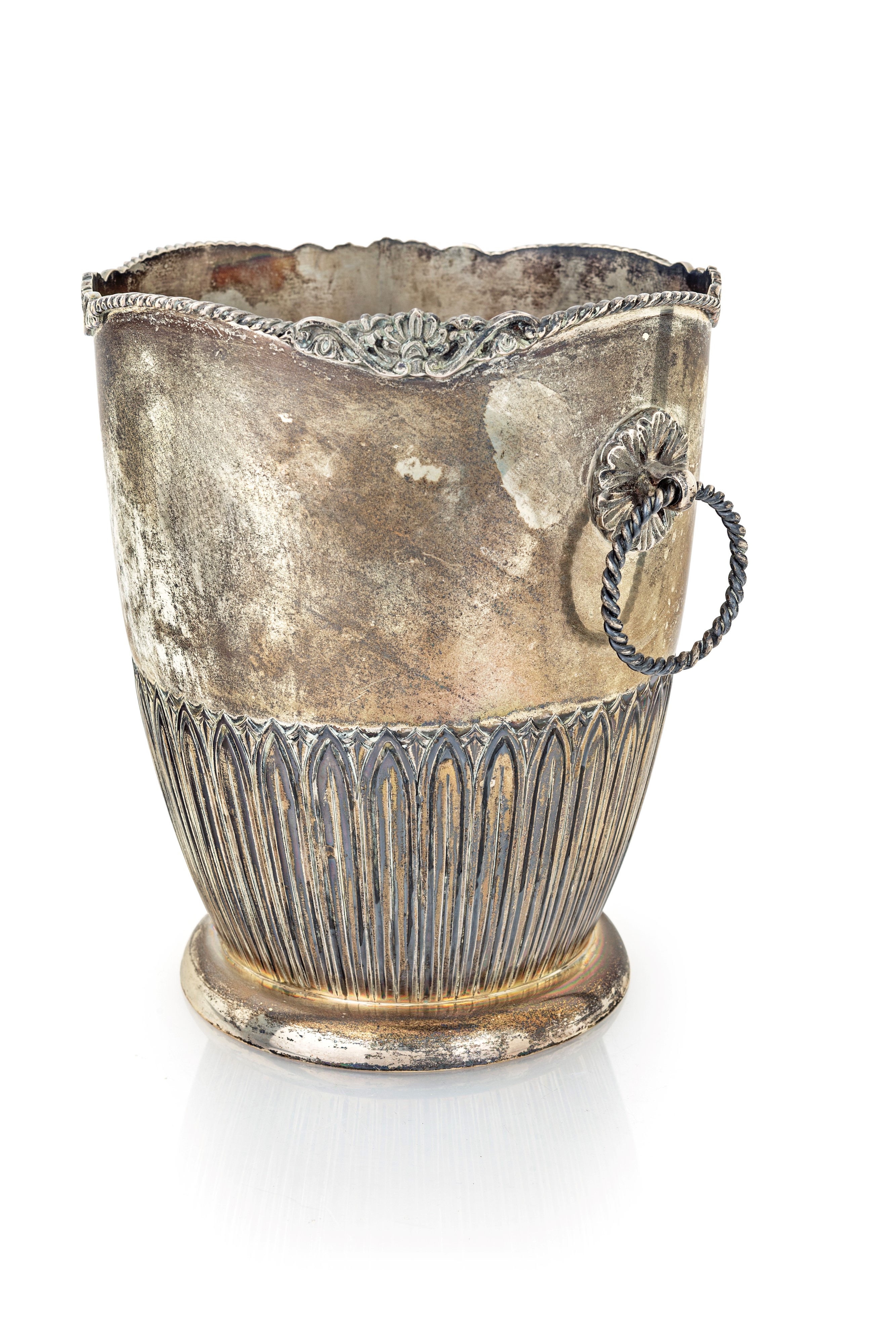 caratterizzato da lunghe foglie lanceolate nella parte inferiore; profilo superiore sagomato sottolineato da cordolo, manici ad anello tortile con attacchi in forma di rosone