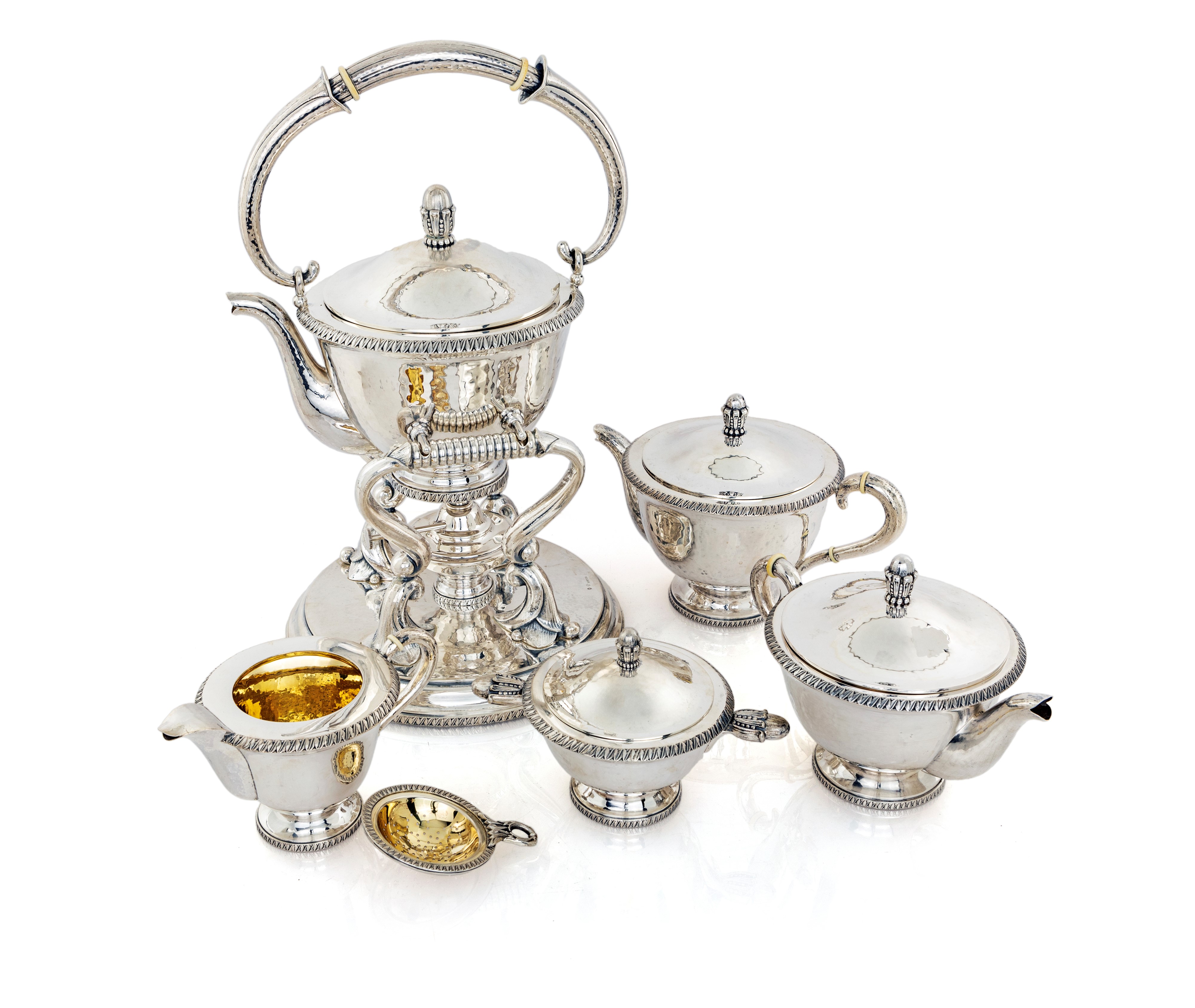 Servizio da tè in argento e in metallo argentato composto da cinque elementi