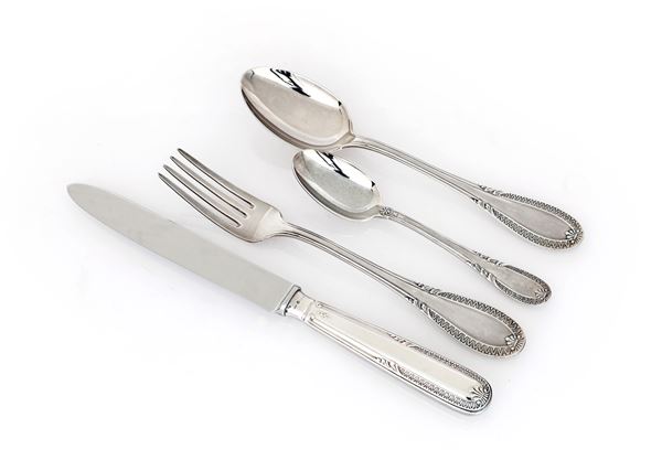 cucchiaio (cm 20,5), forchetta (cm 20,5) e coltello da pasto (cm 25) ed un cucchiaio da dessert (cm 15)