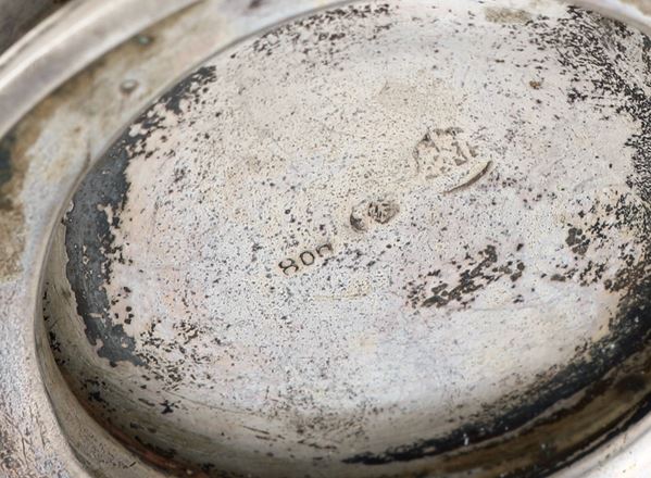 corpo a pianta quadrangolare con facciate decorate a sbalzo con figure di pescatore e di contadina ambientate in paesaggi; coperchio a fungo e basso piede circolare