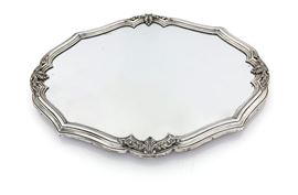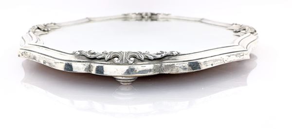 cornice mistilinea modanata impreziosita da composizioni vegetali sbalzate; supporto in legno sorretto da piedi a cupolino