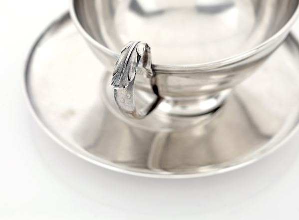 Tazza da puerpera con piatto, argentiere E. Broggi