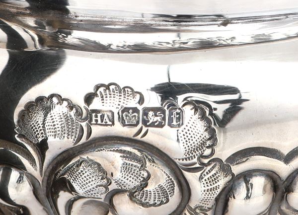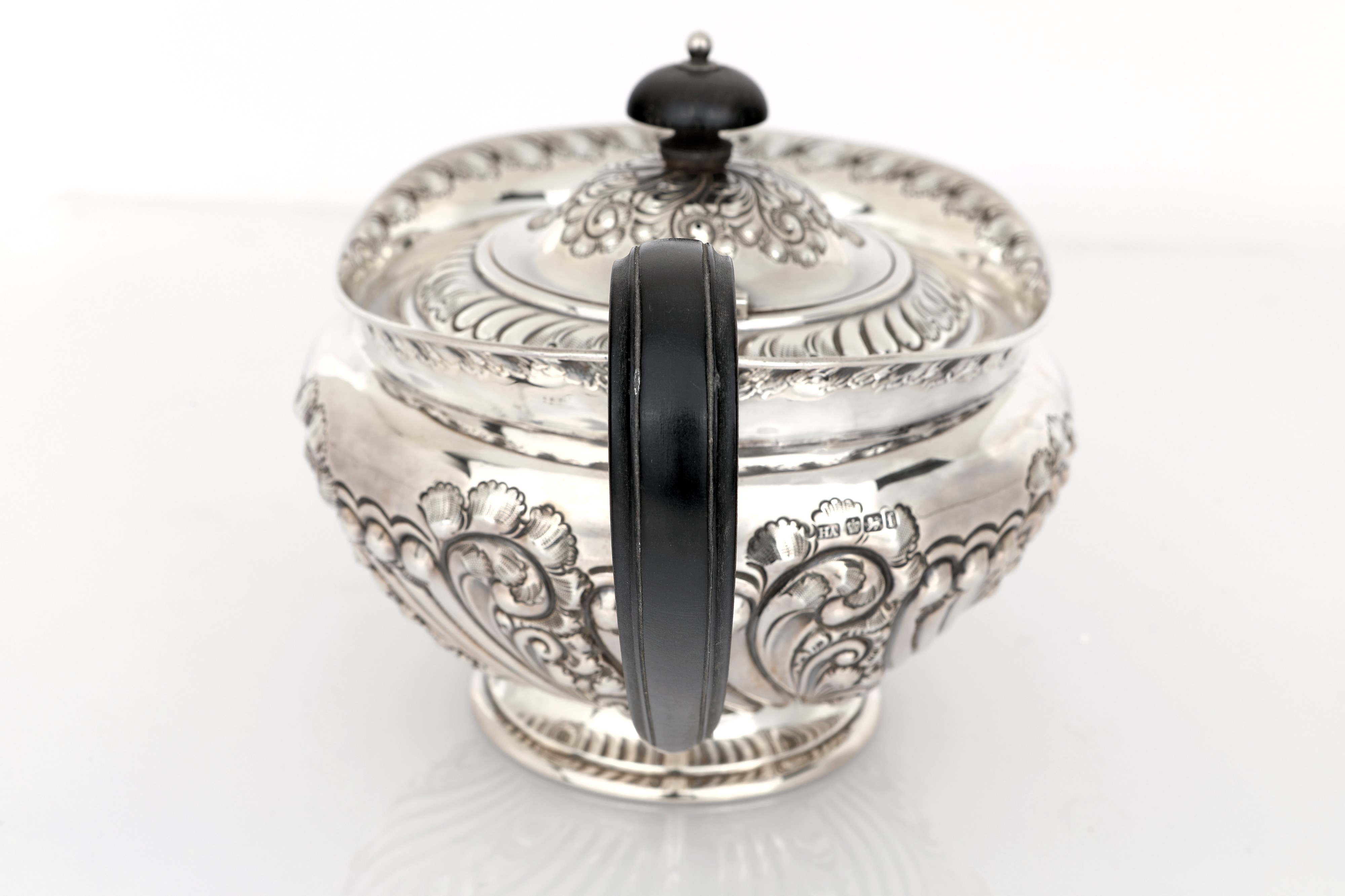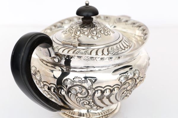 Teiera baccellata con fiori sbalzati, città di Sheffield 1898
