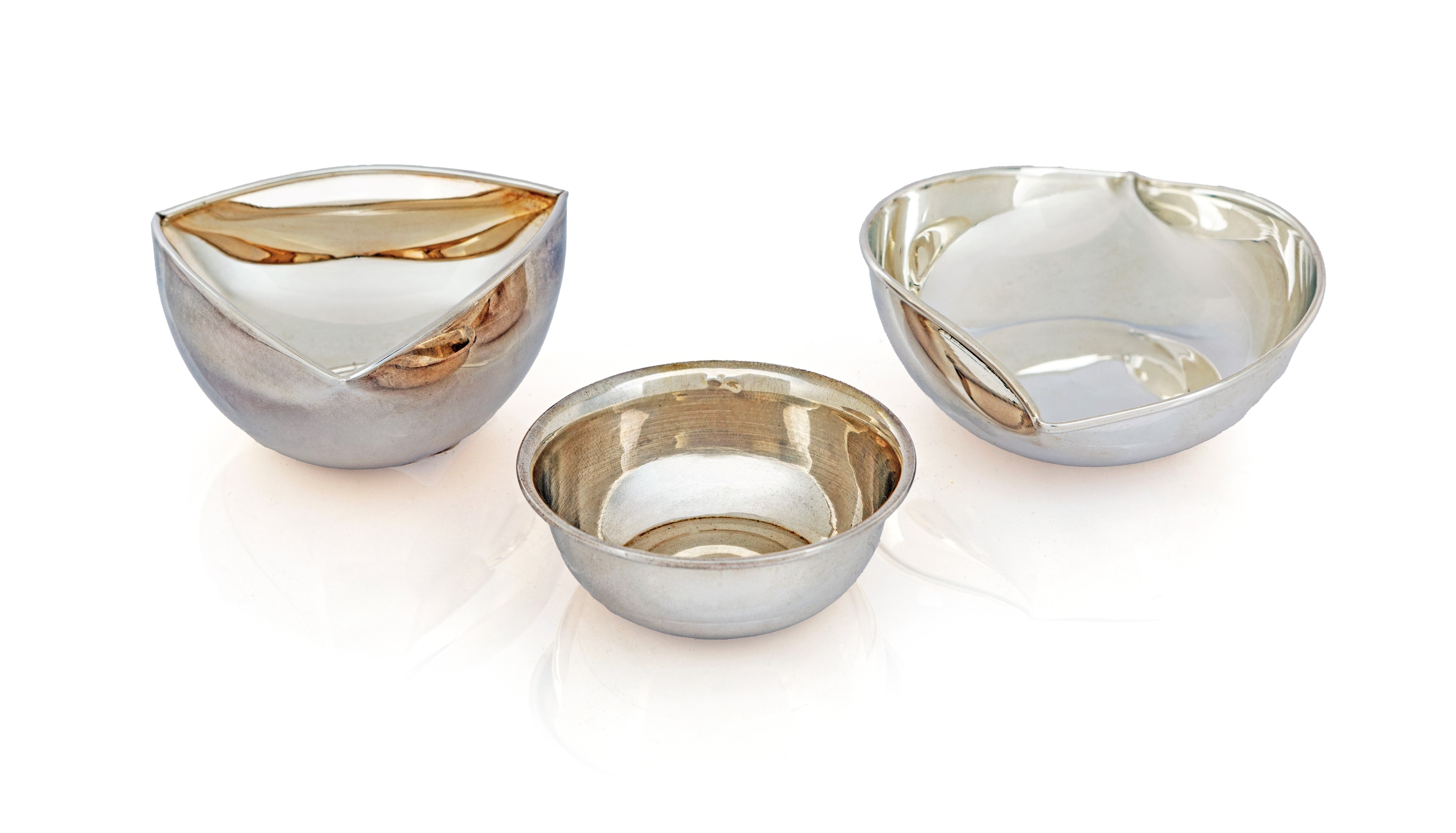 una piccola circolare, una trilobata dell'argentiere Pampaloni in argento 925/000 ed una a forma di foglia