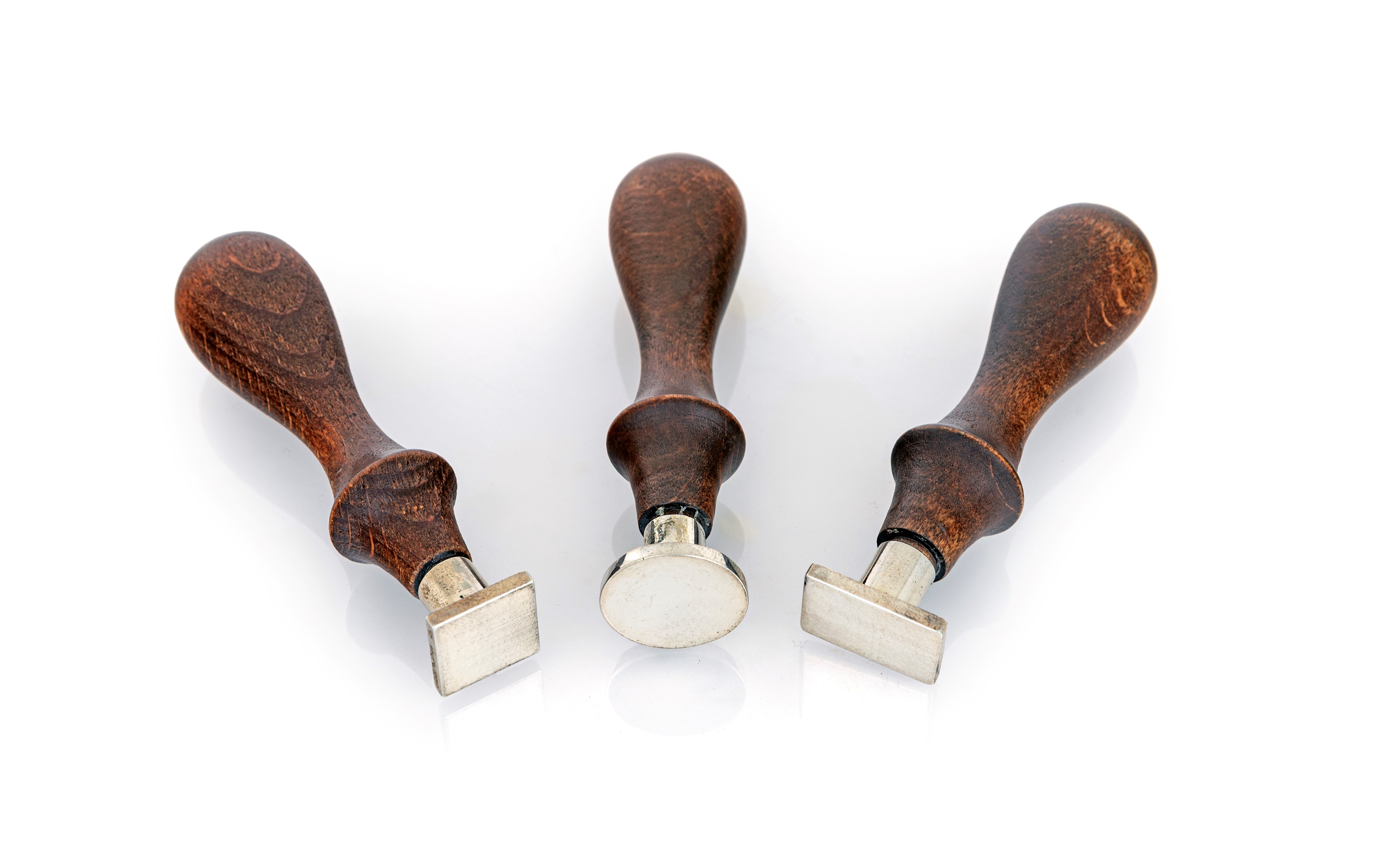 Tre sigilli in legno con matrici in argento 925/000 di diversa forma