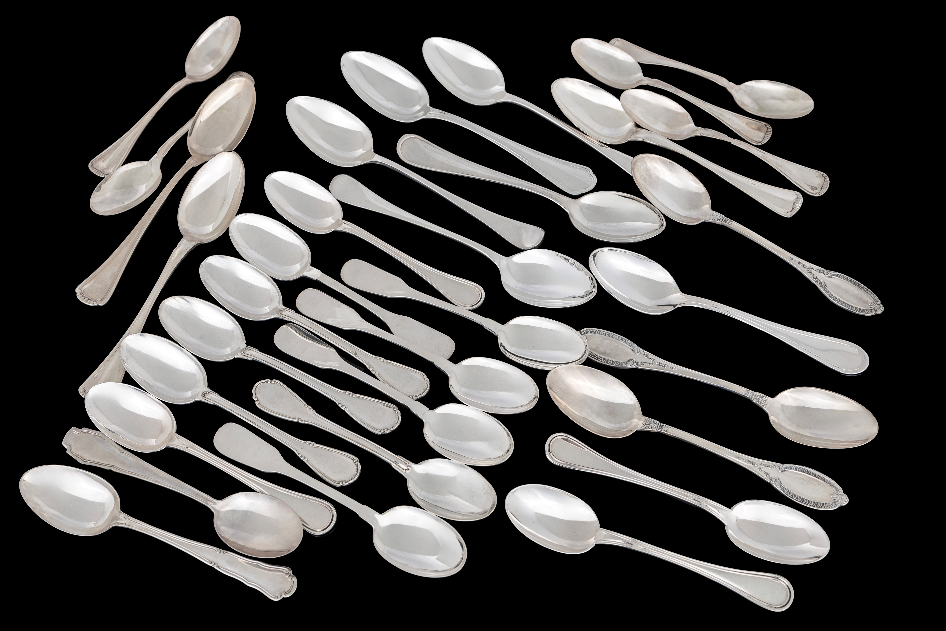 Trentadue cucchiaini da caffè e da tè appartenenti a diversi servizi