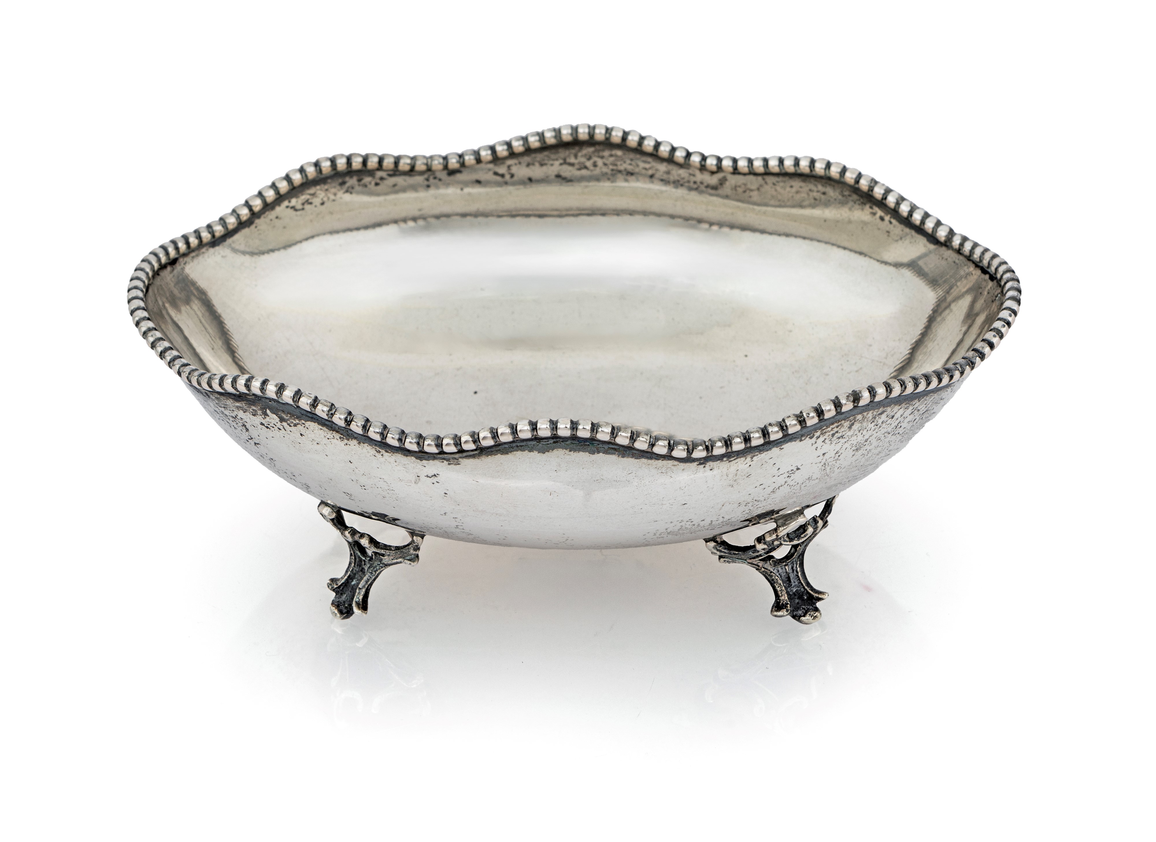 orlo curvilineo perlinato, piedi in forma di cartiglio