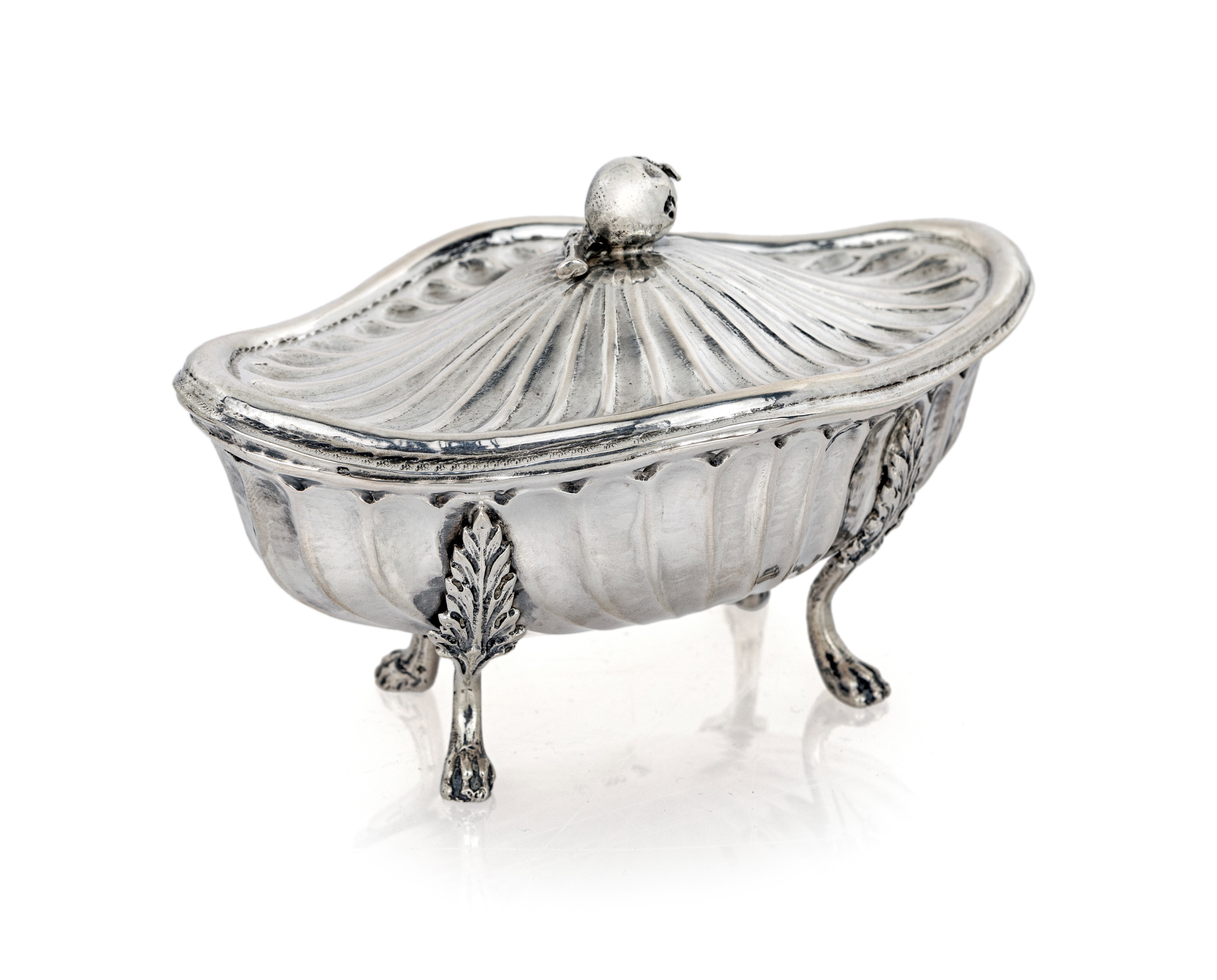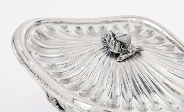 Zuccheriera ovale con coperchio sormontato da un frutto