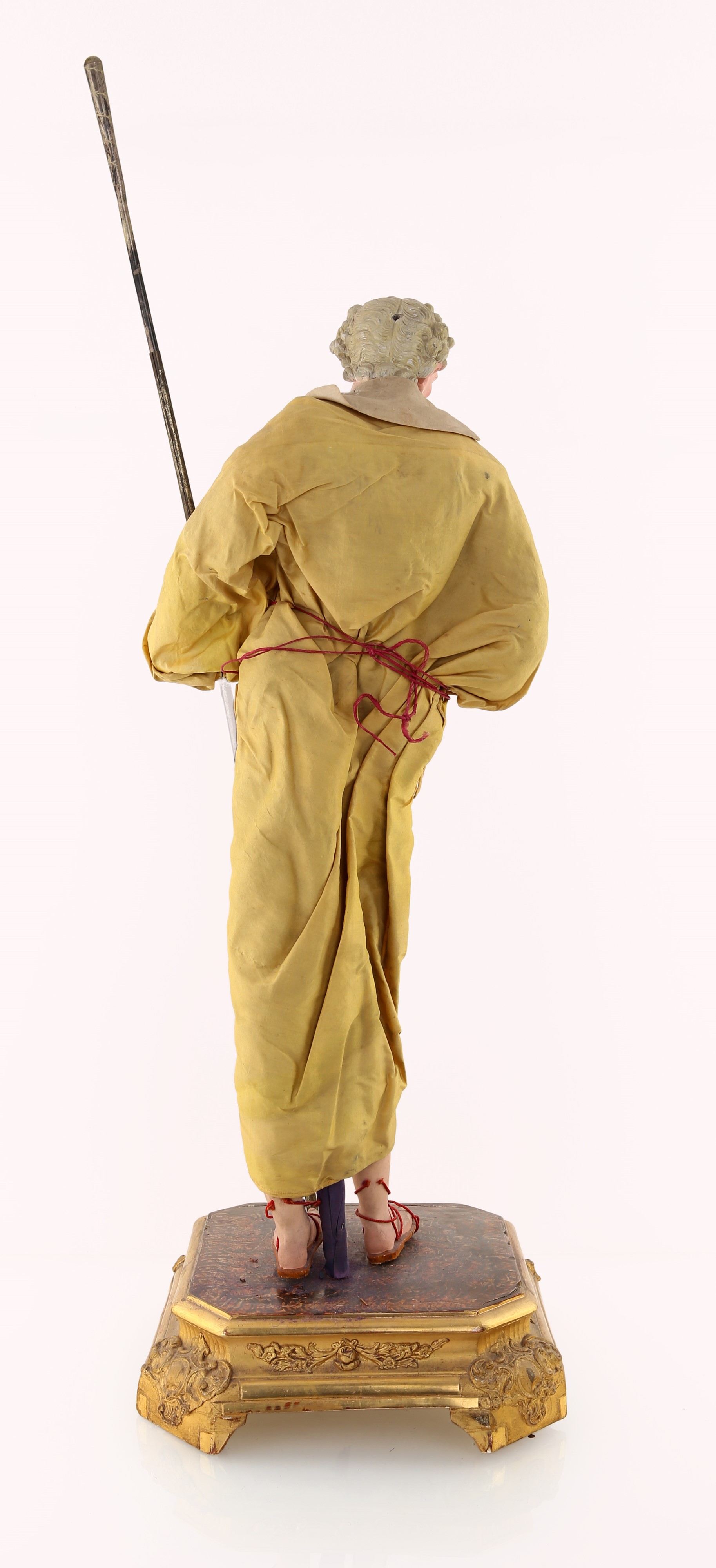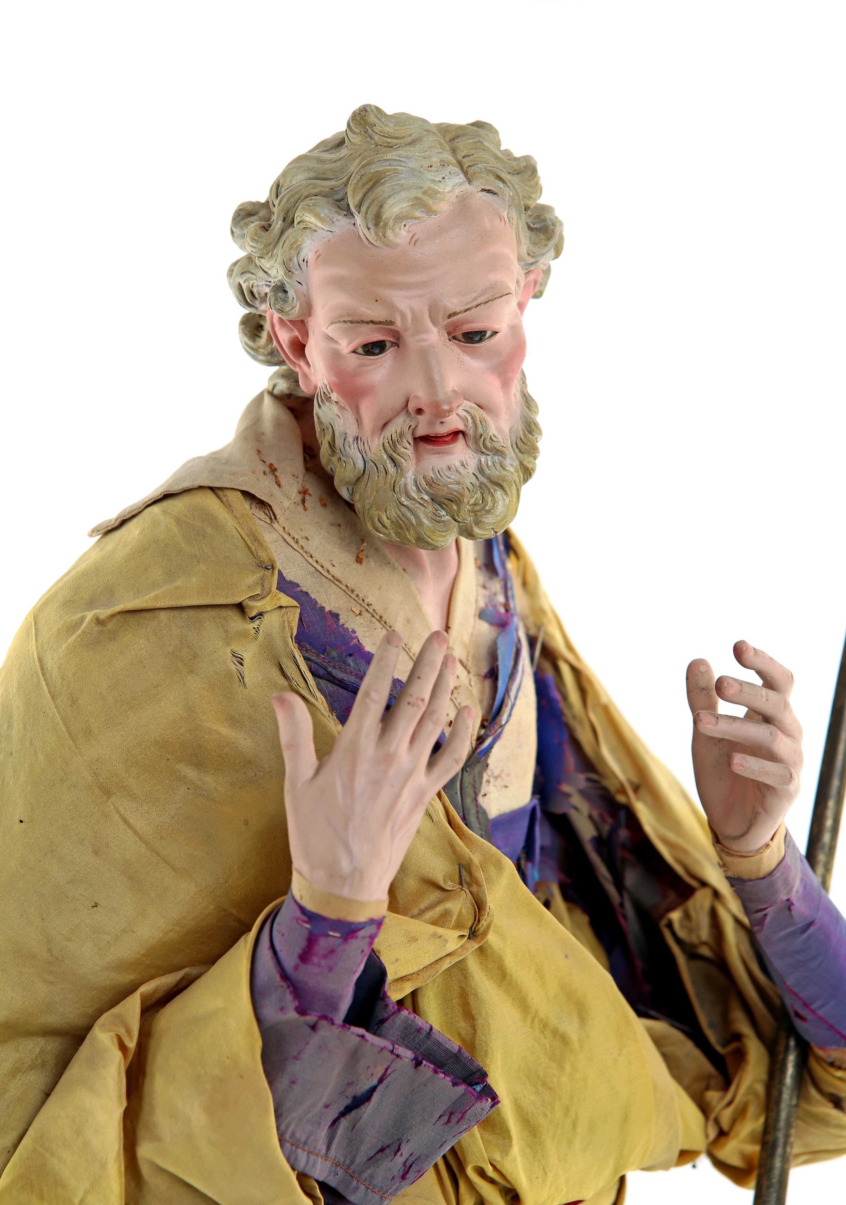 Grande figura di San Giuseppe con camicia viola e tunica gialla