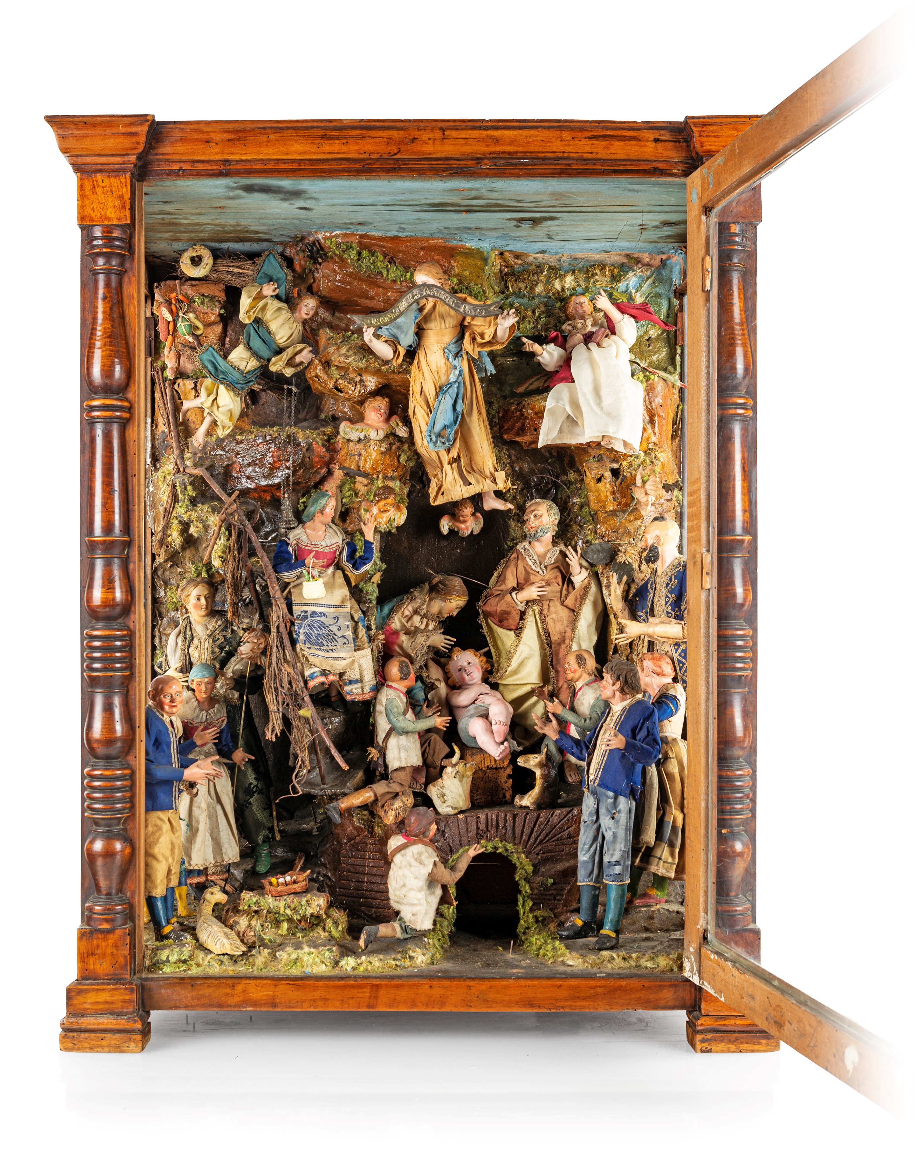 Teca presepiale in legno con scoglio interno, XIX secolo