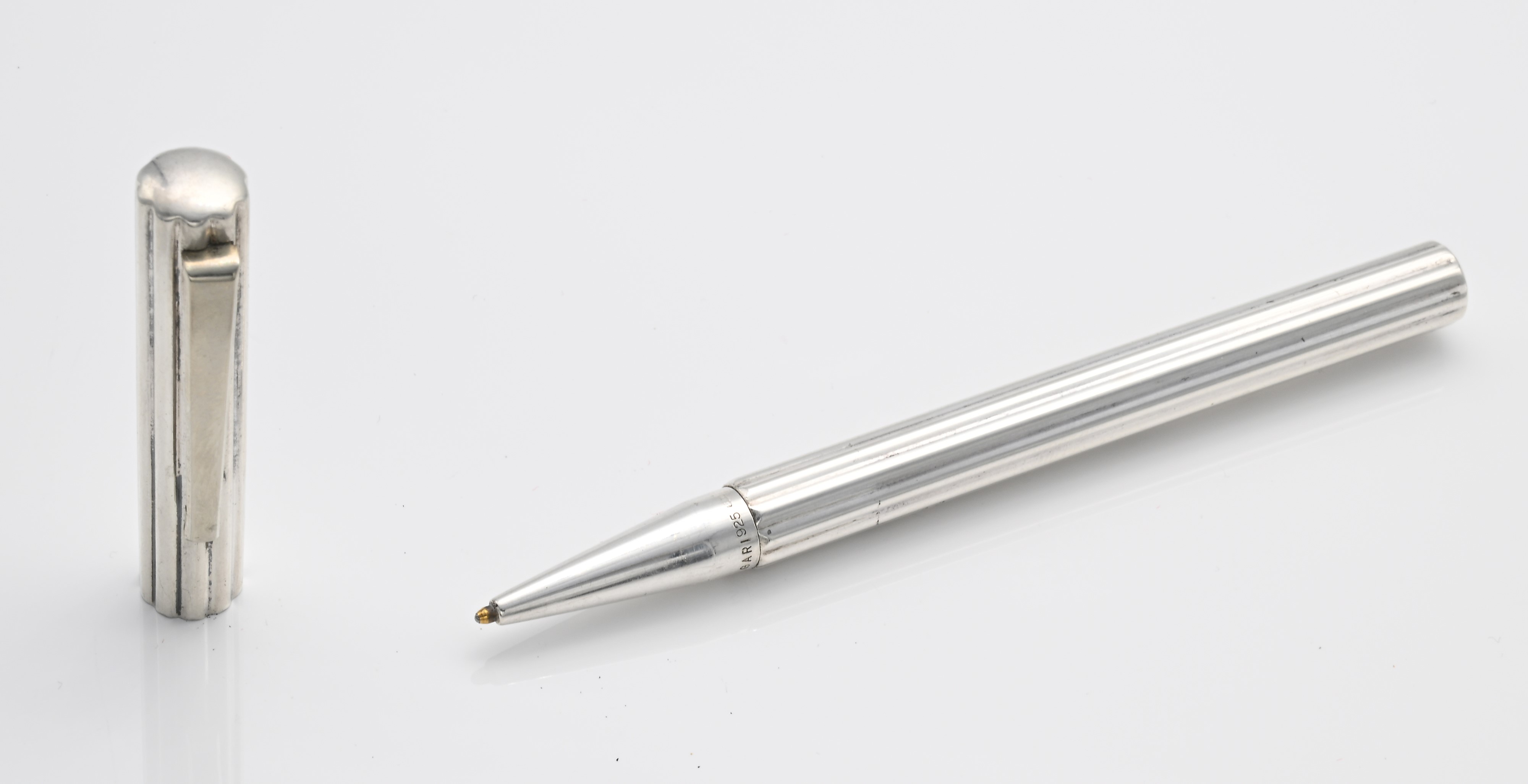 Bulgari - Penna a sfera in argento 925/000 con fusto scanalato