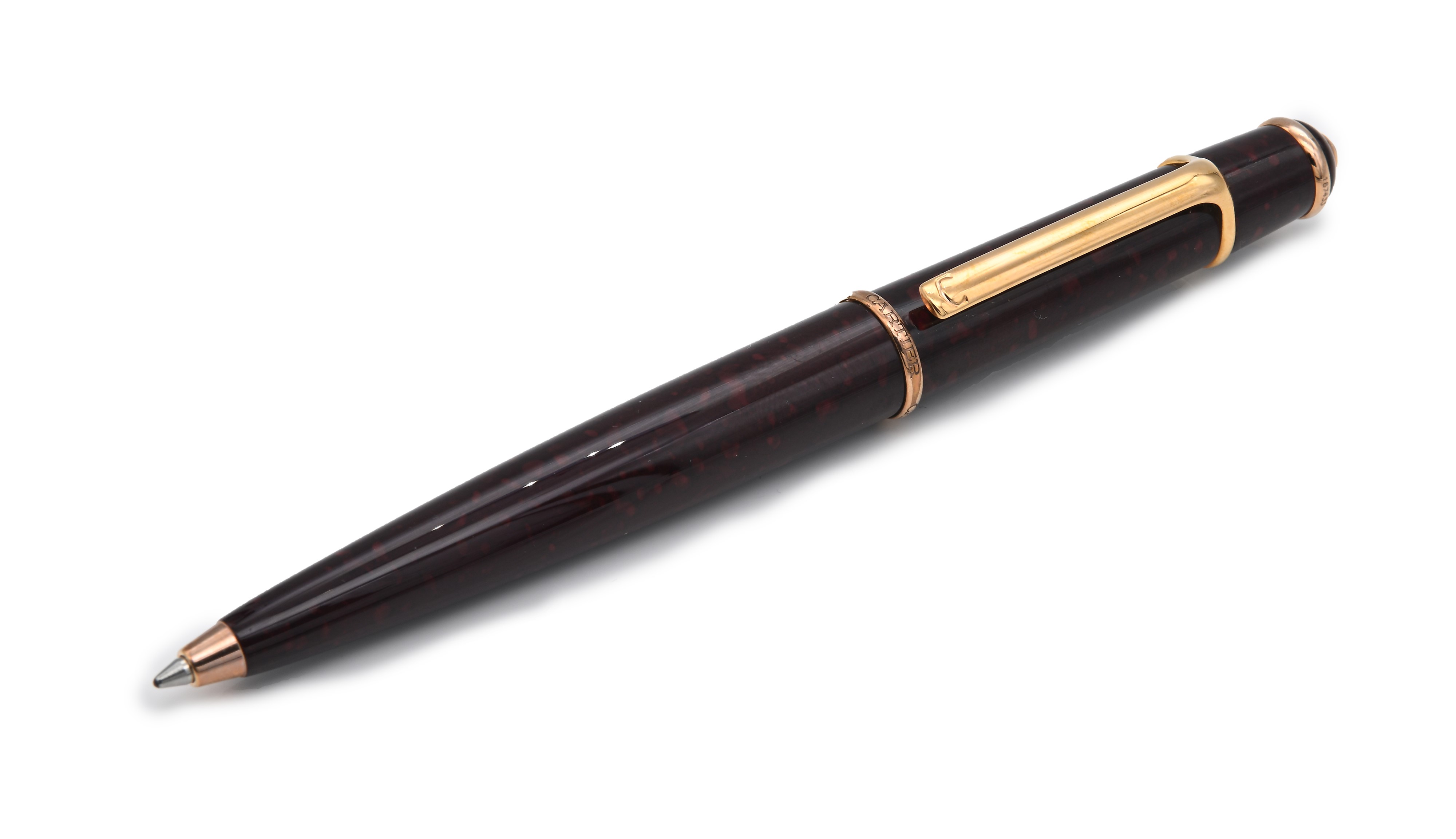 Cartier Diabolo - Penna a sfera in vernice bordeaux effetto marmorizzato con particolari in metallo placcato in oro giallo e rubino cabochon (ST180003)