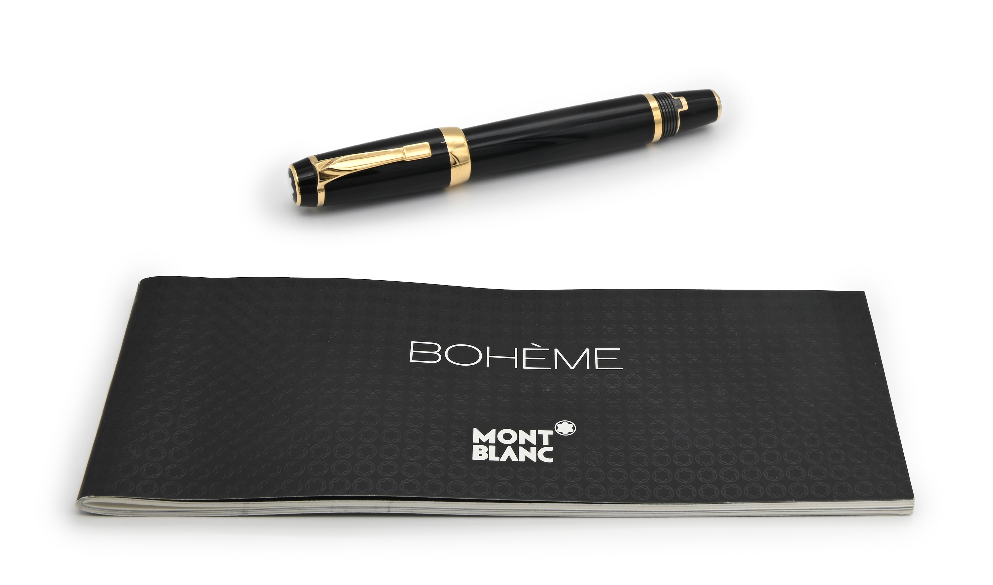 Montblanc Boheme - Penna stilografica con pennino retrattile in vernice nera e finiture laminate in oro giallo