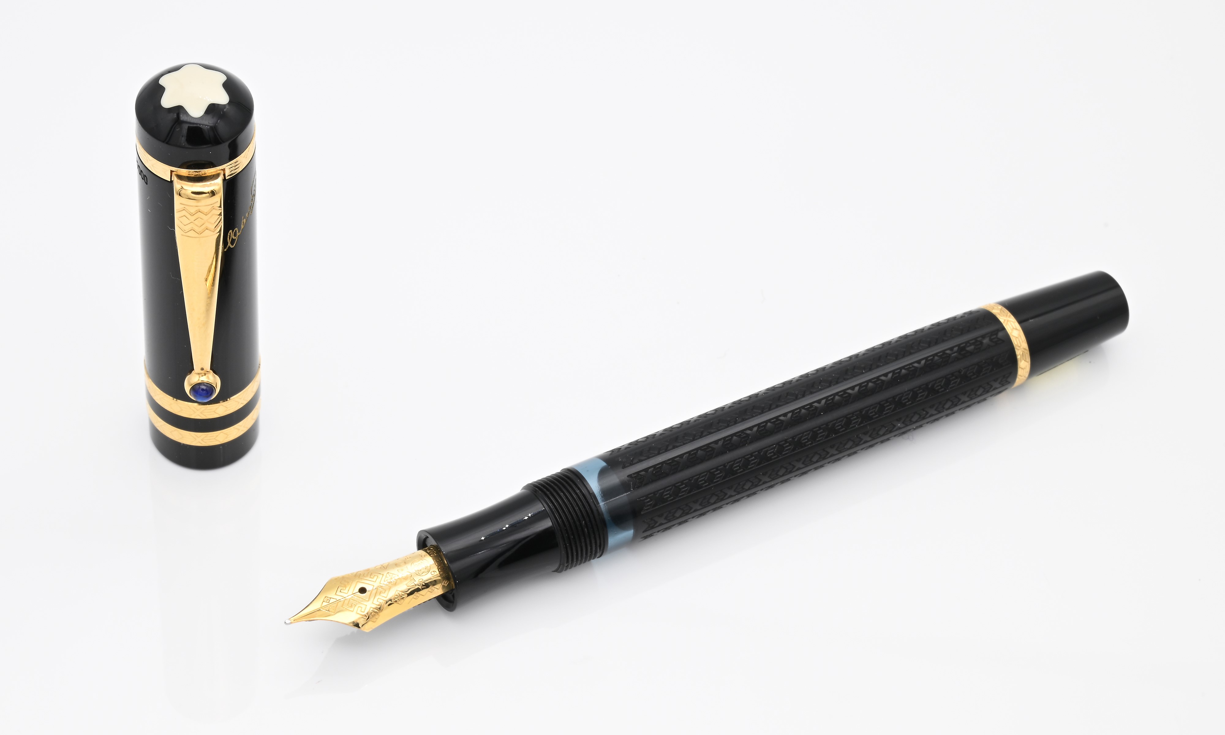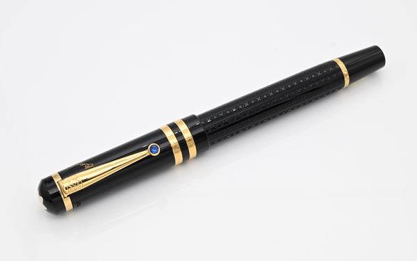 Come nuova. Mai usata. Penna da esposizione in negozio. Pennino M (modificato) in oro giallo 18 Kt. Edizione limitata a 17000 esemplari, Ns. N. 7815. Con astuccio a forma di libro, scatola di cartone, garanzia ed istruzioni originali.