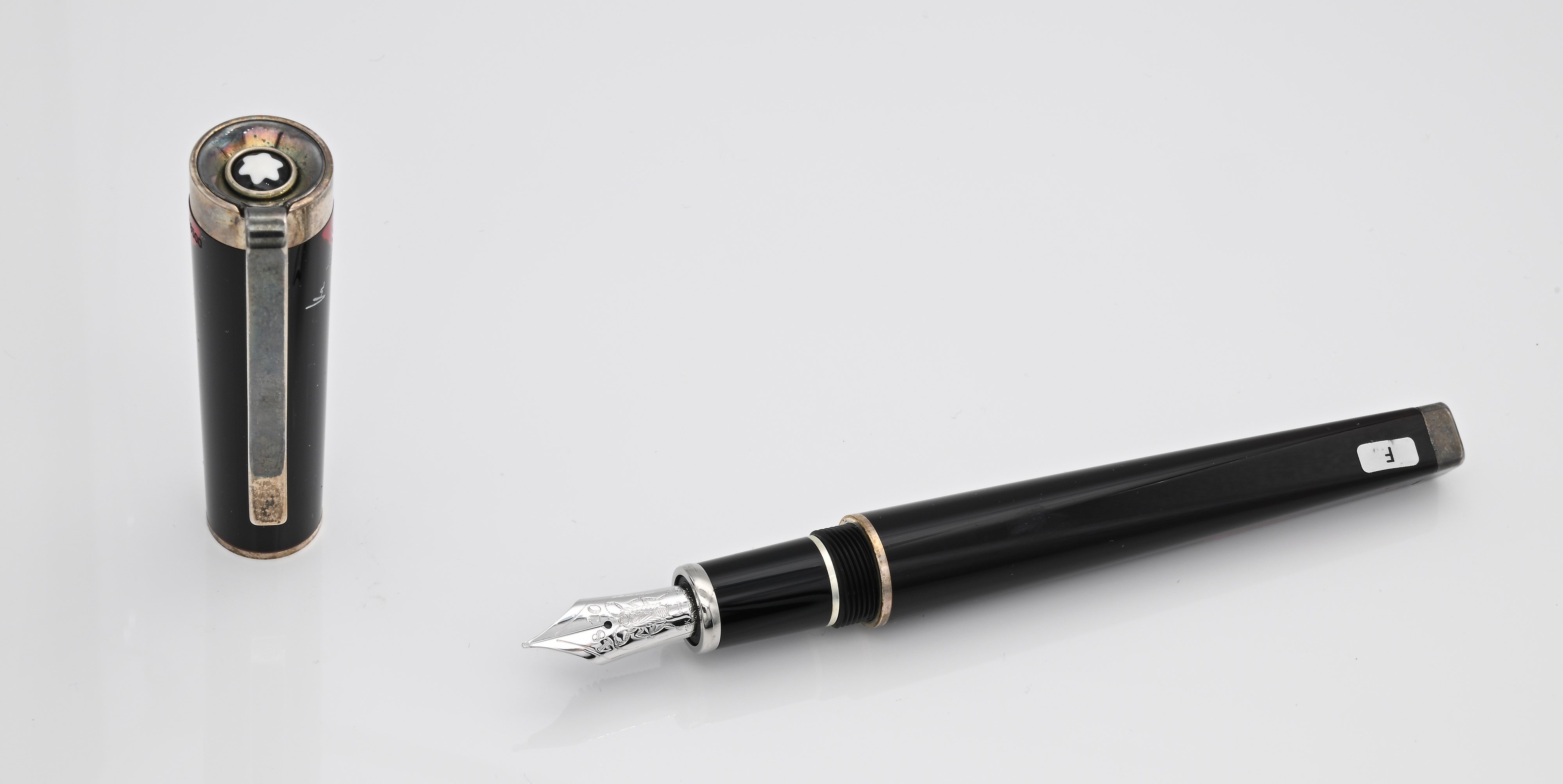 Montblanc Franz Kafka Limited Edition - Penna Stilografica in in resina trasparente color rosso scuro con cono, clip ed anelli in argento 925/000 Sterling, 2004