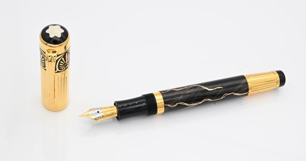 Montblanc Hommage a Alexander The Great Limited Edition 28641 - Penna Stilografica in resina marmorizzata e metallo placcato in oro giallo con smalto nero (18628), 1998