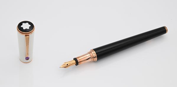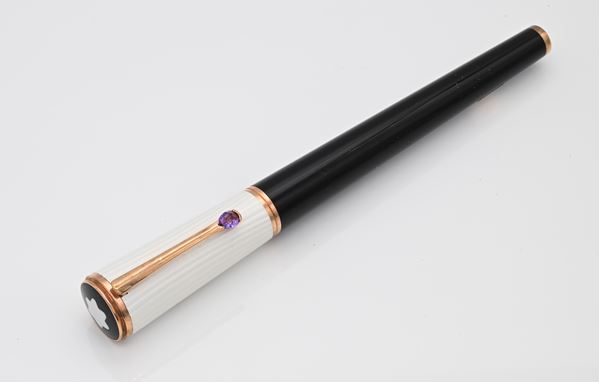 Montblanc Ingrid Bergman La Donna Special Edition 104905 - Penna Stilografica in resina nera e metallo con lacca bianca ed inserti placcati in oro rosso con ametista sulla clip (Mod. 28907)