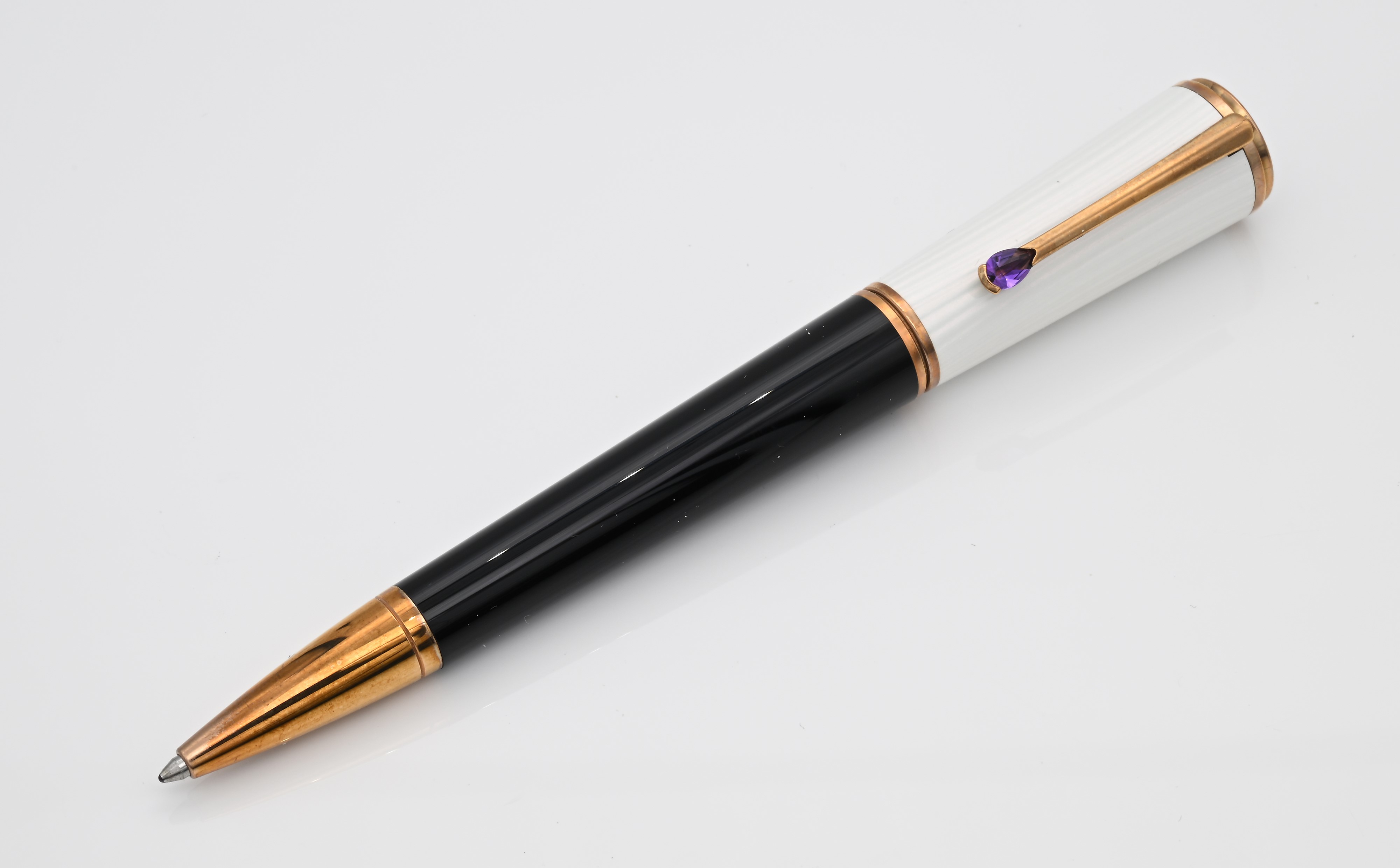 Montblanc Ingrid Bergman La Donna Special Edition 104907 - Penna a Sfera in resina nera e metallo con lacca bianca ed inserti placcati in oro rosso con ametista sulla clip (Mod 28908)
