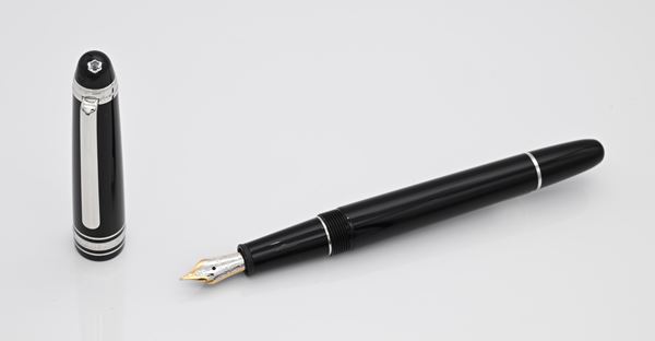 Montblanc Meisterstuck Diamond Classique 105977 - Penna stilografica in resina nera con particolari platino e diamante nel cappuccio (Mod. 23795)
