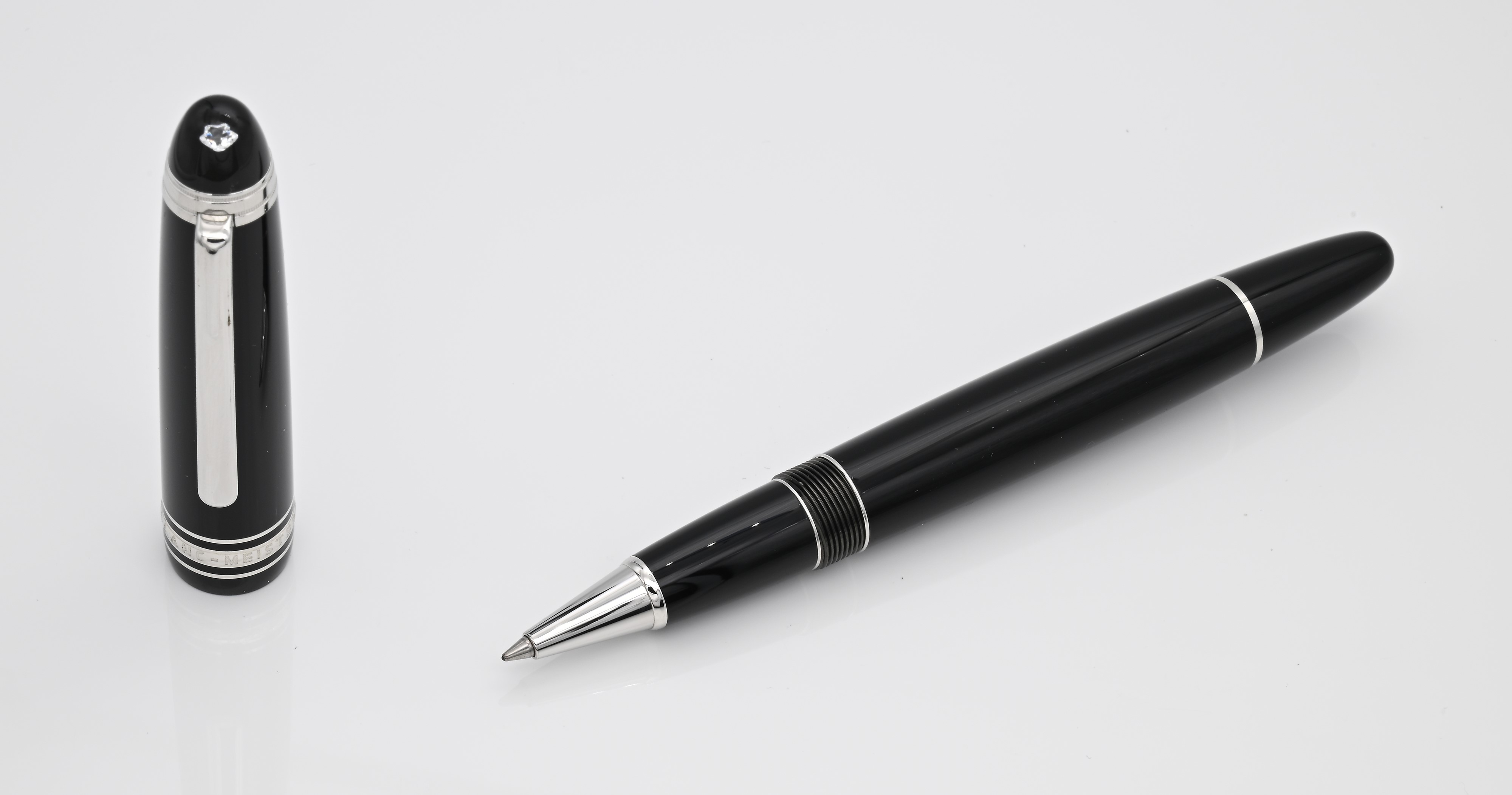 Montblanc Meisterstuck Diamond LeGrand 106126 - Roller in resina nera con particolari platino e diamante nel cappuccio (Mod. 23794)