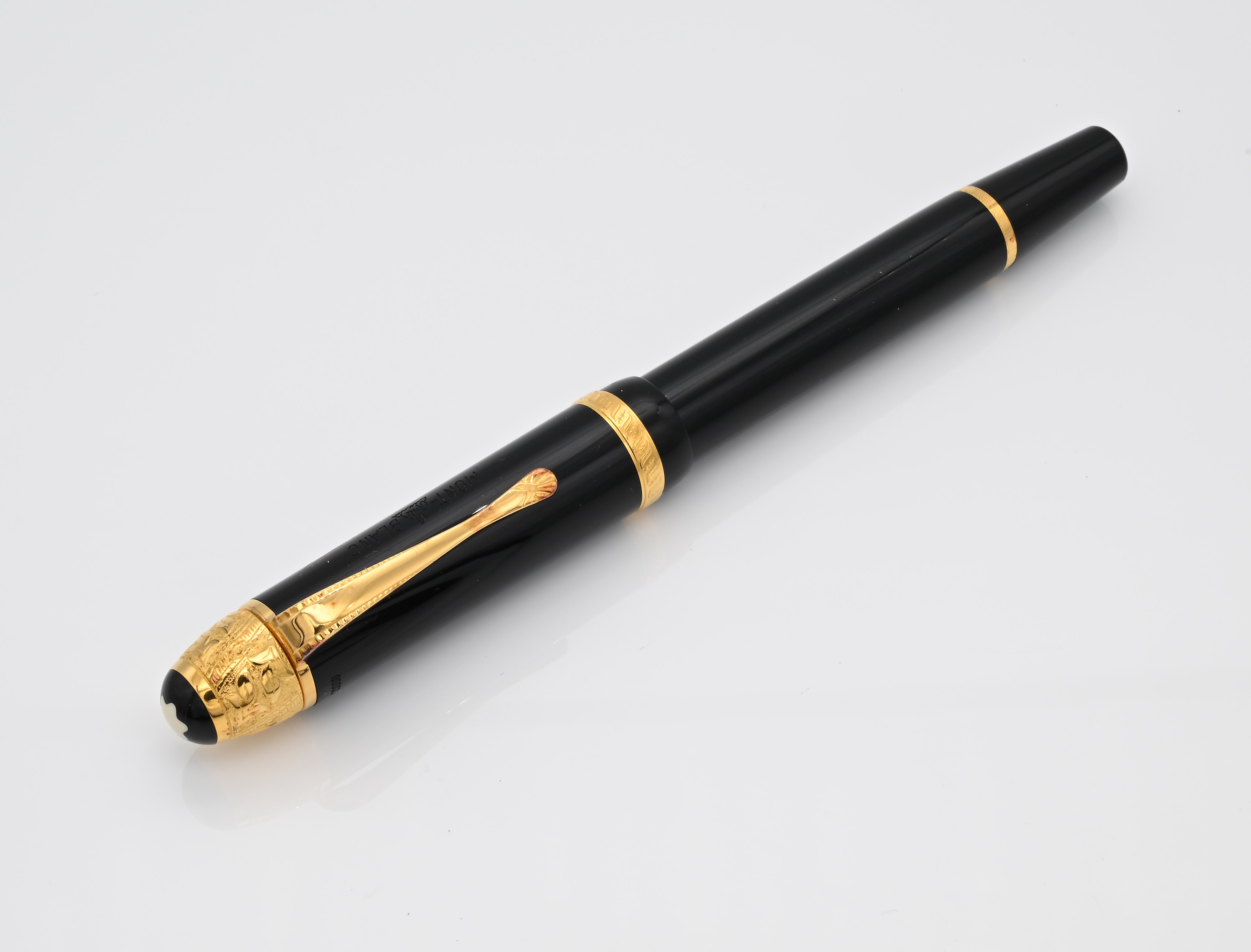 Come nuova. Mai usata. Penna da esposizione in negozio. Pennino M (modificato) in oro bicolore 18 Kt. Edizione limitata a 20000 esemplari, Ns. N. 13985. Con astuccio a forma di libro, scatola di cartone, garanzia ed istruzioni originali.