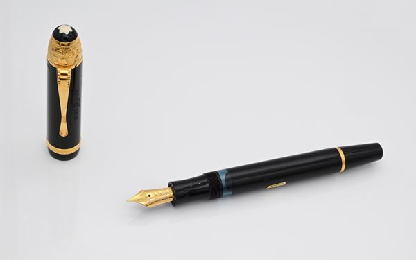 Montblanc Meisterstuck Voltaire Limited Edition 28620 - Penna Stilografica in resina nera con particolari in argento placcato in oro giallo, 1995