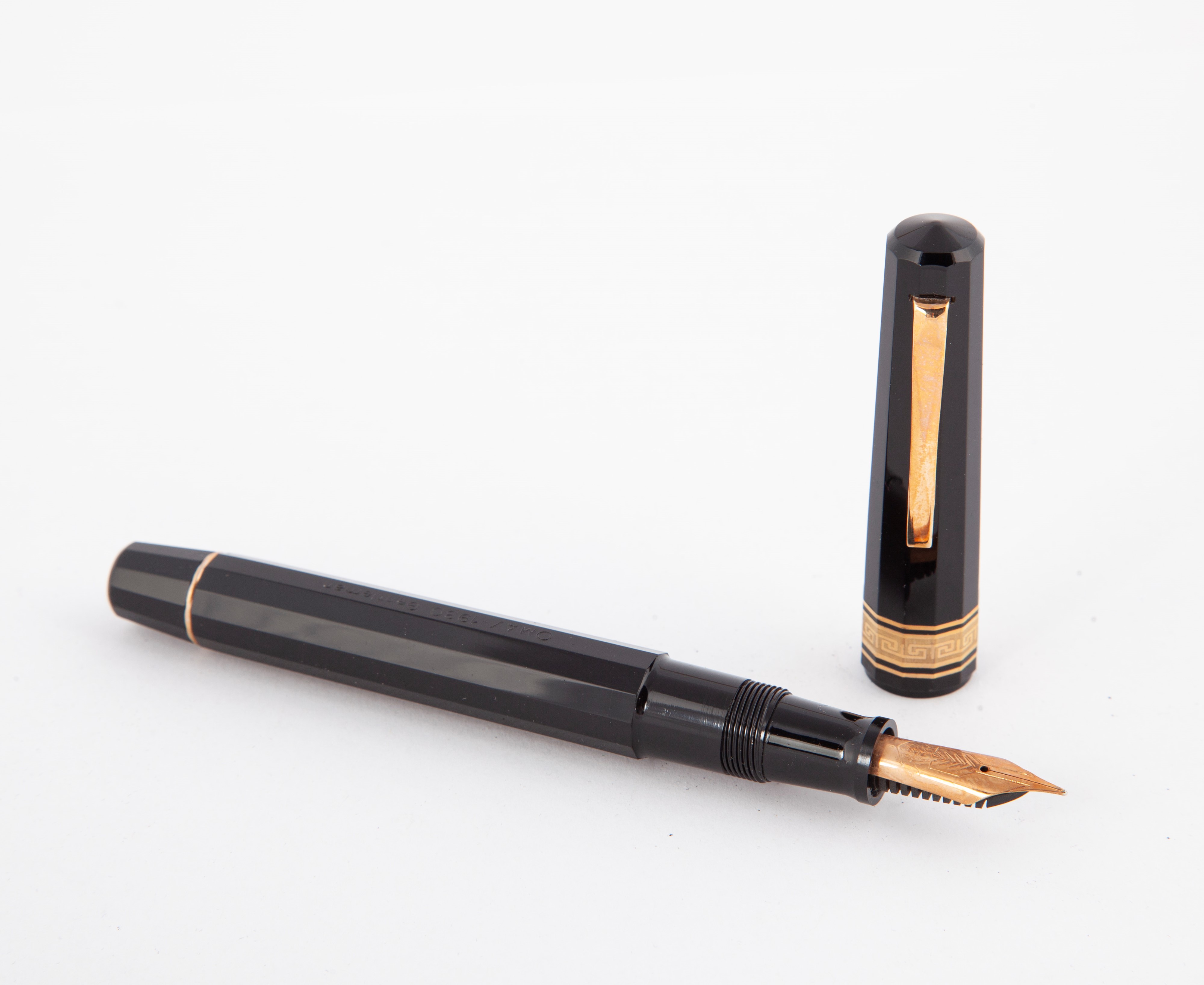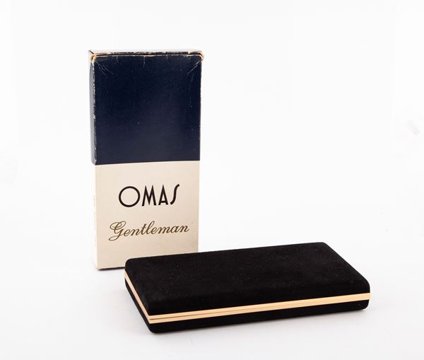 Omas 1930 Gentleman - Penna stilografica a pistone in celluloide nera con particolari in metallo placcato in oro giallo