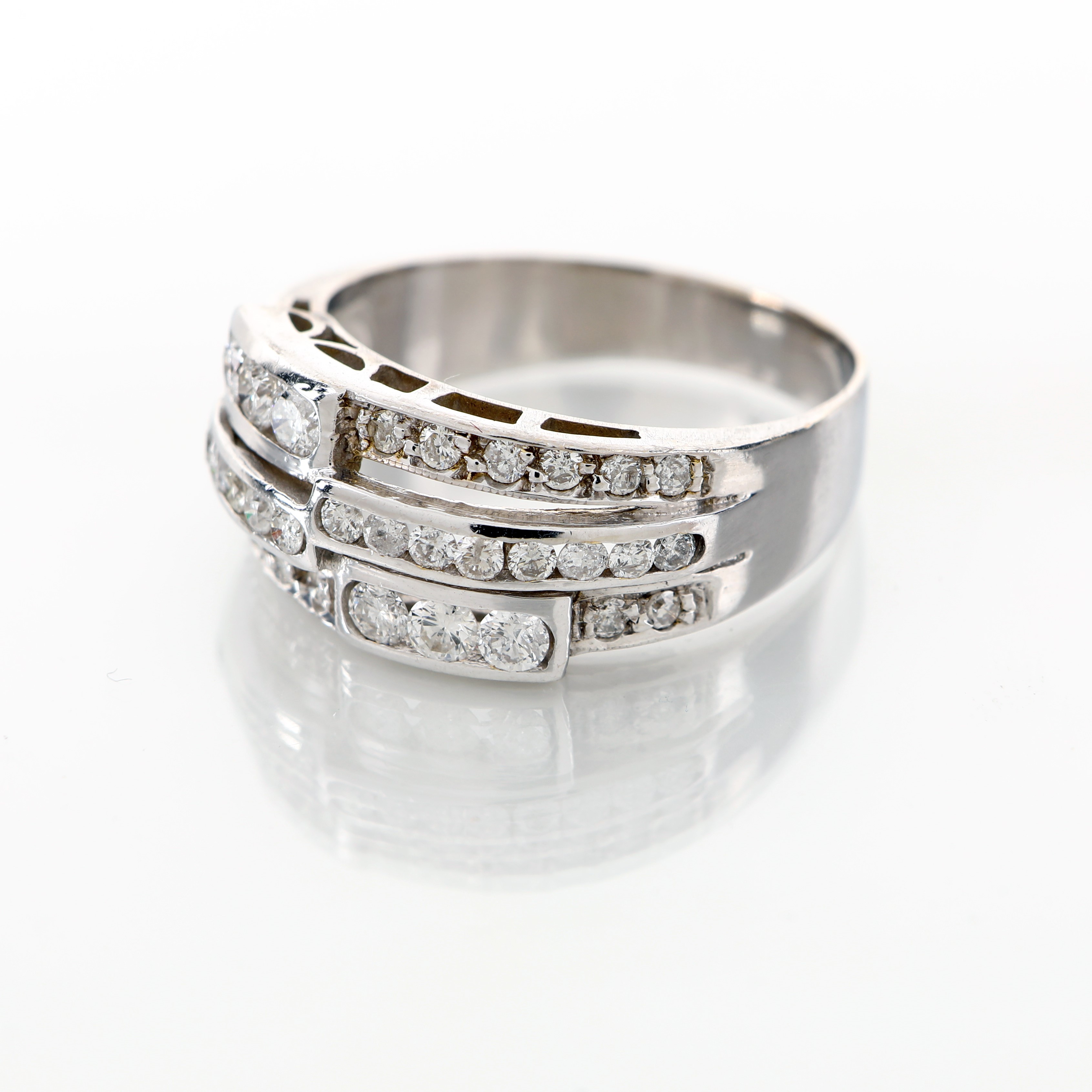 Oro bianco 750/000. Diamanti in taglio rotondo brillante ct. 0,80 ca. Peso complessivo gr. 6,80