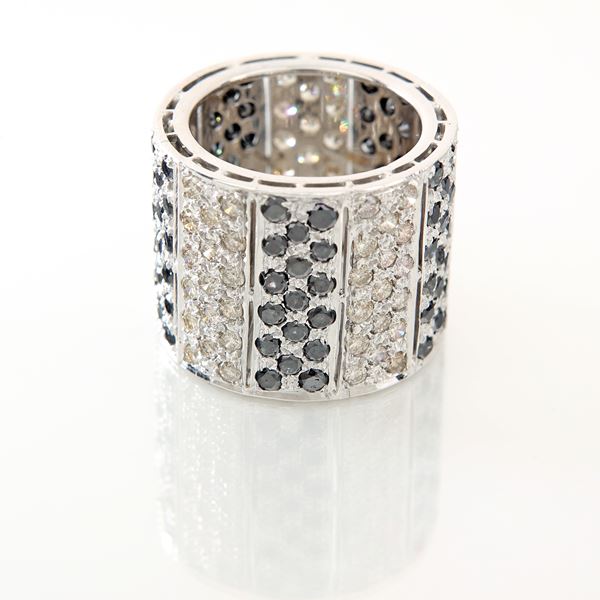 Anello fascia a giro in oro brillanti e brillanti neri