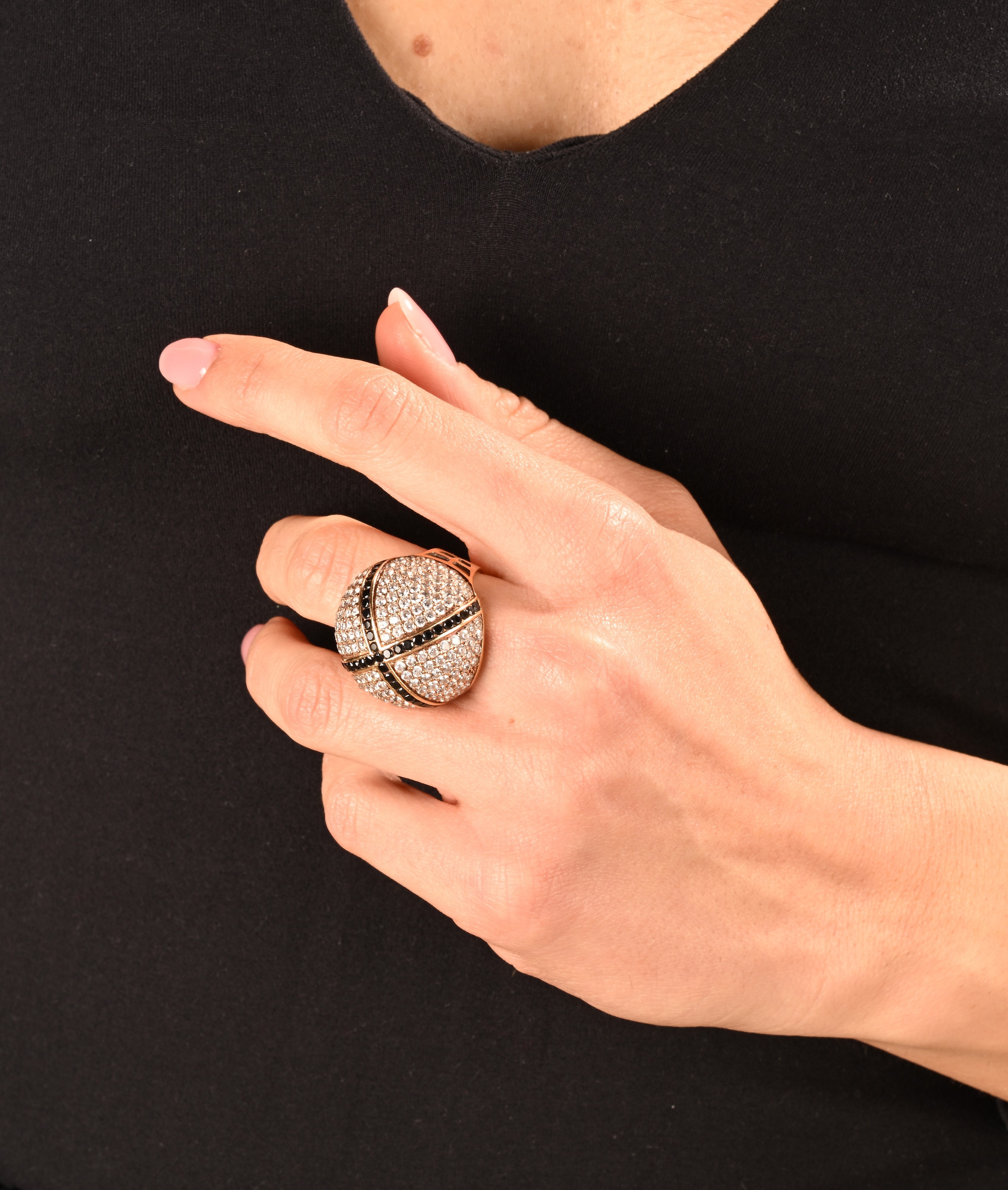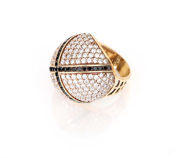 Anello in oro, brillanti e diamanti neri.
