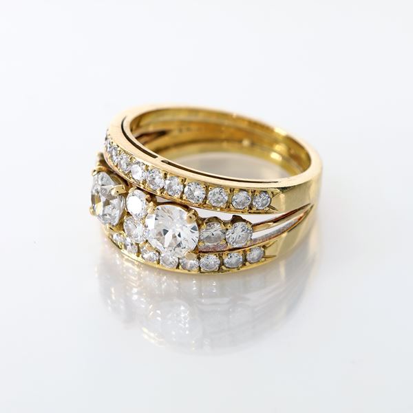 Oro giallo 750/000. Diamanti in taglio rotondo brillante ct. 1,60 ca. prob. G-H, VS-SI. Peso complessivo gr. 6,80