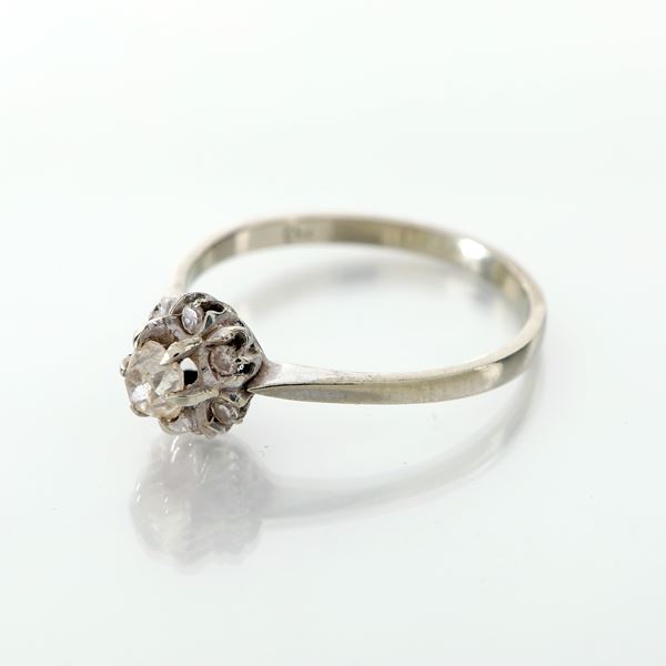 Oro bianco 750/000. Diamante in taglio ovale. Peso complessivo gr. 2,70