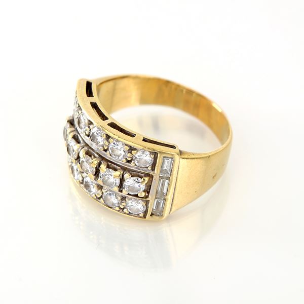 Oro giallo 750/000. Diamanti in taglio rotondo brillante e baguettes. ct. 1,30 ca. Peso complessivo gr. 8.90