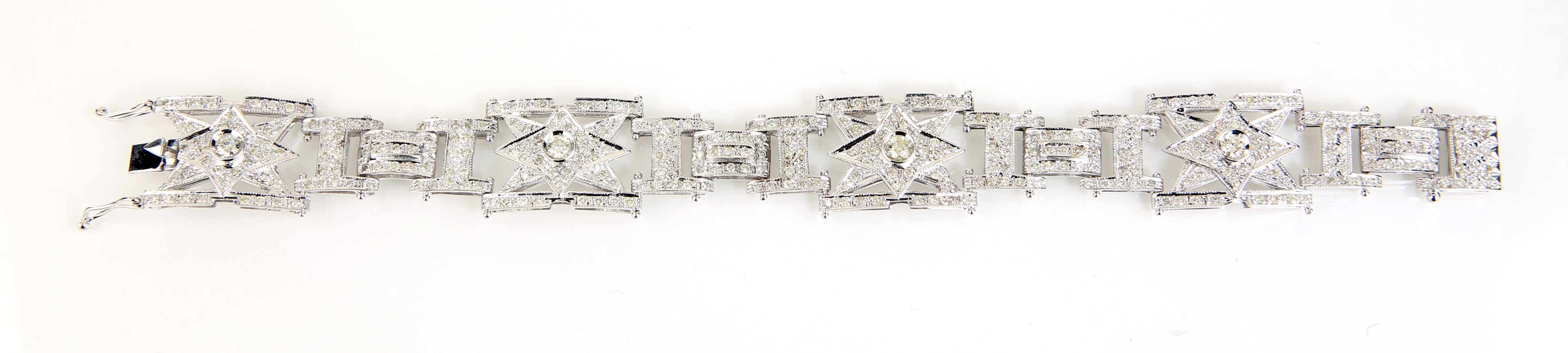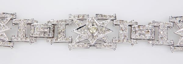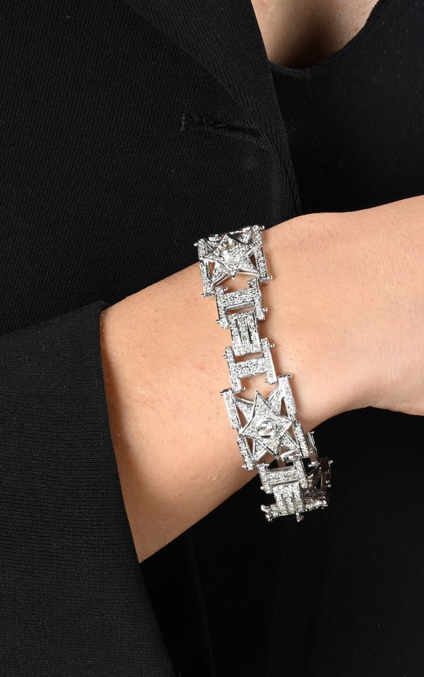 Oro bianco 750/000. Diamanti in taglio rotondo brillanti ct. 4,50 ca. prob.F-G, VS. Peso complessivo gr. 41,50.