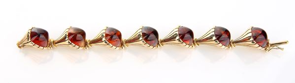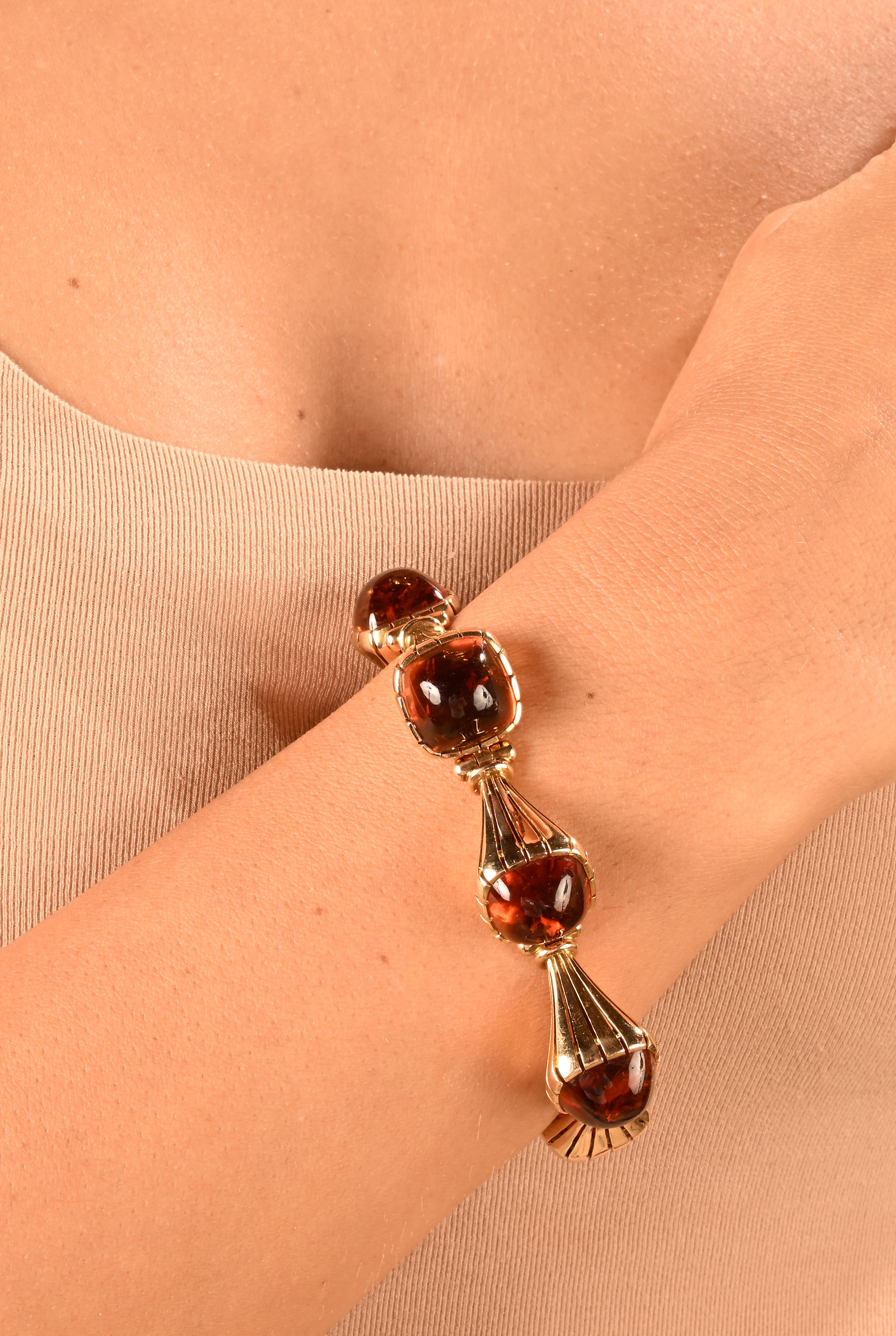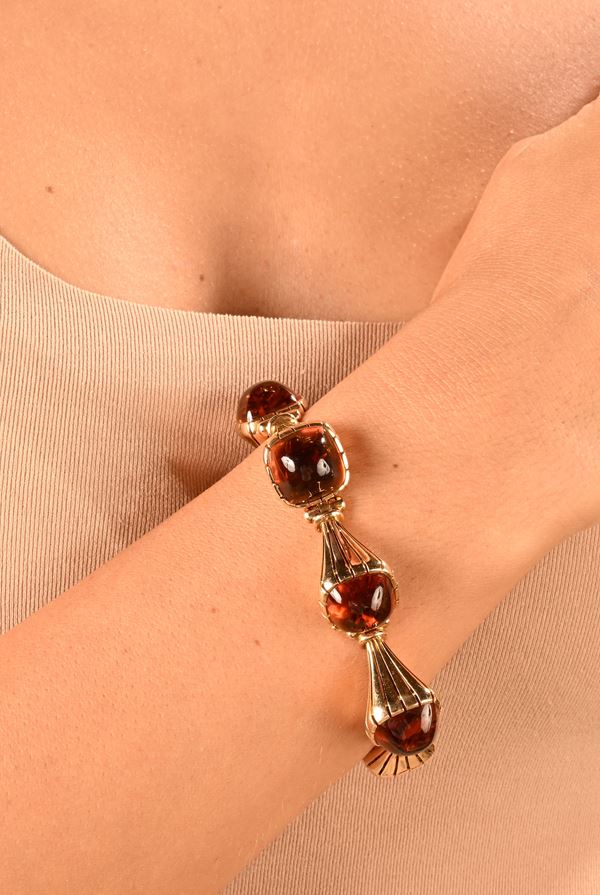 Bracciale in oro rosa e ambra, bollo fascio littorio, Anni '30/'40