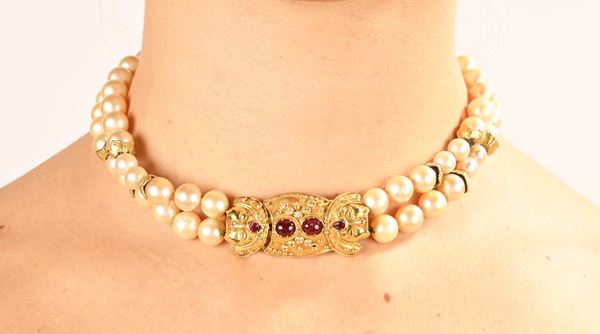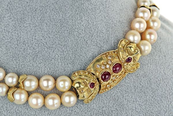 Collana di perle coltivate, oro e brillante