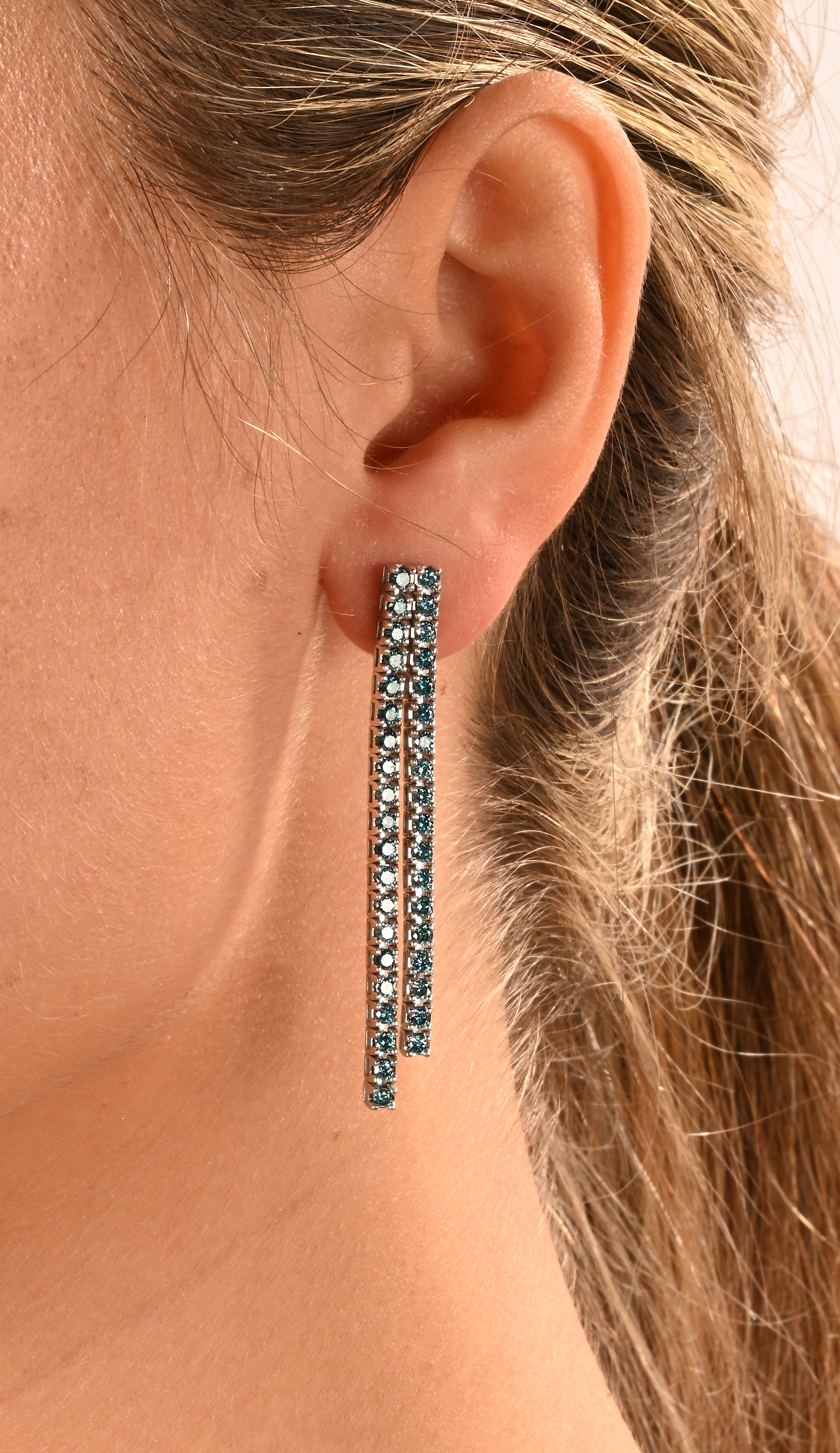 Coppia di orecchini pendenti in oro e diamanti fancy blu