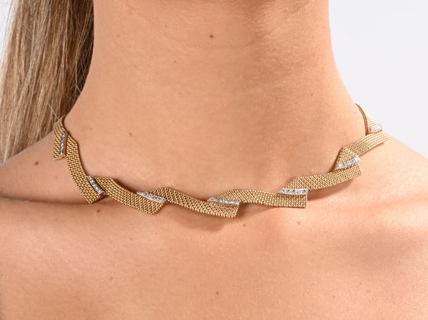 Oro giallo 750/000. Lavorazione con maglia a . Peso complessivo gr. 44,20