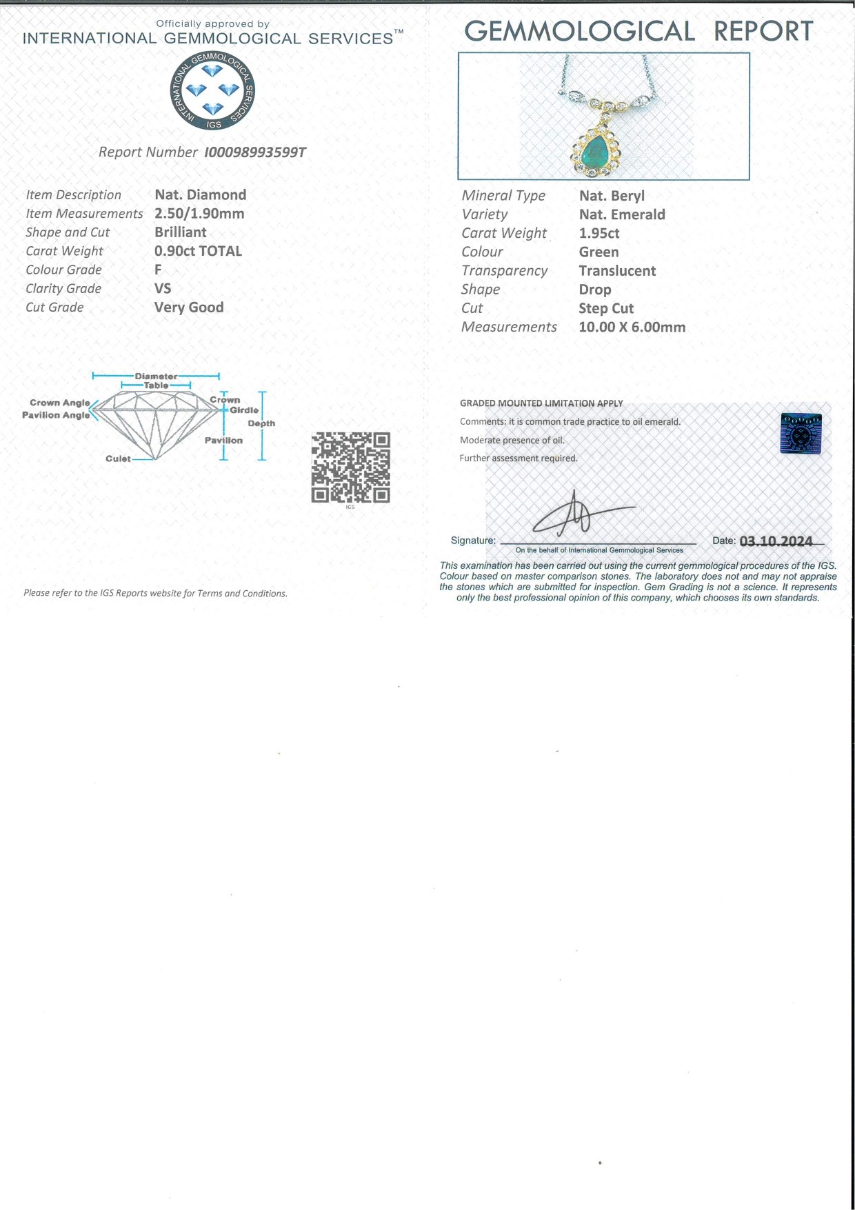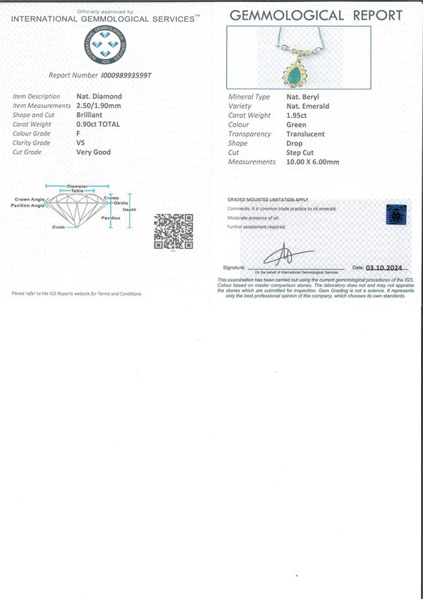 Corredato di certificazione gemmologica.